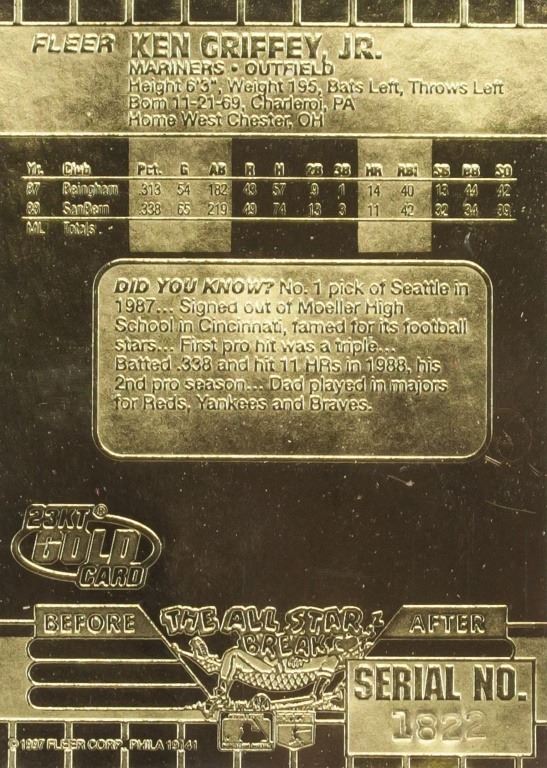 Fleer 1997 23kt gold signature series. Featuring Ken Griffey Jr. Signed.