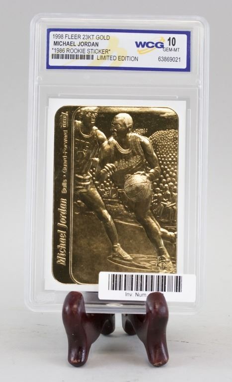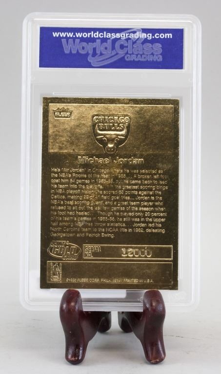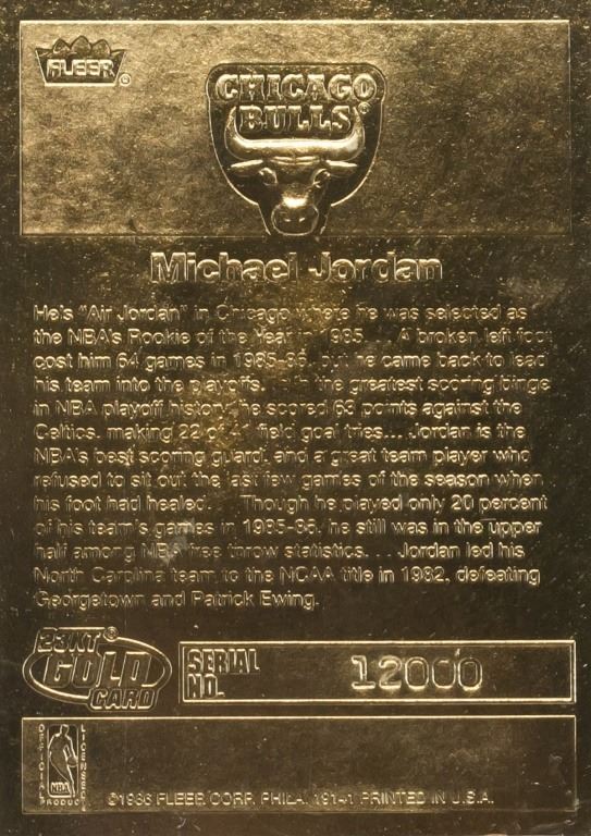 Fleer 1998 23kt gold limited edition trading card. Featuring Michael Jordan.