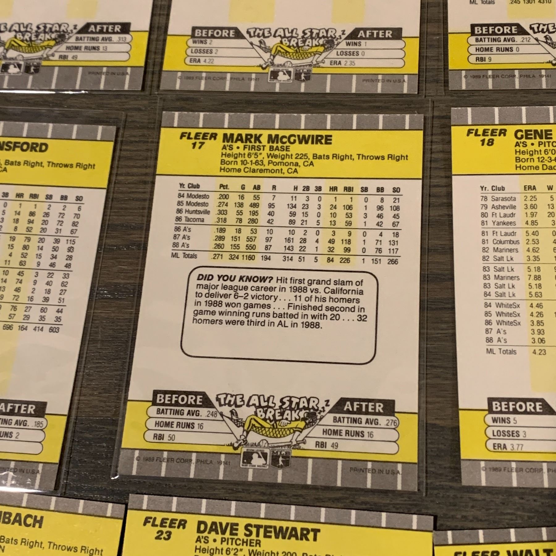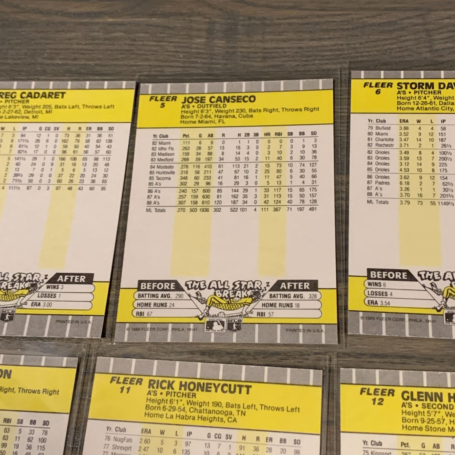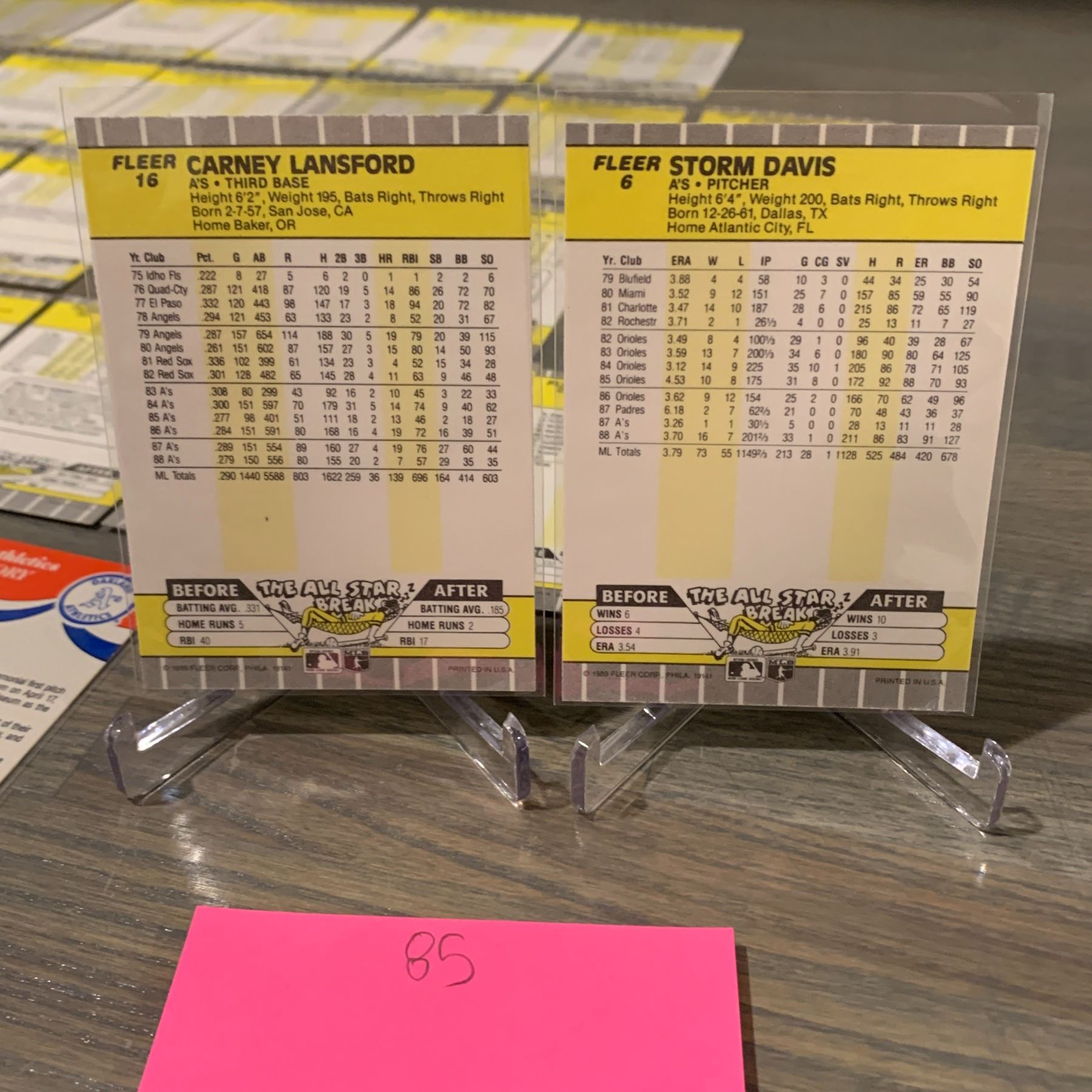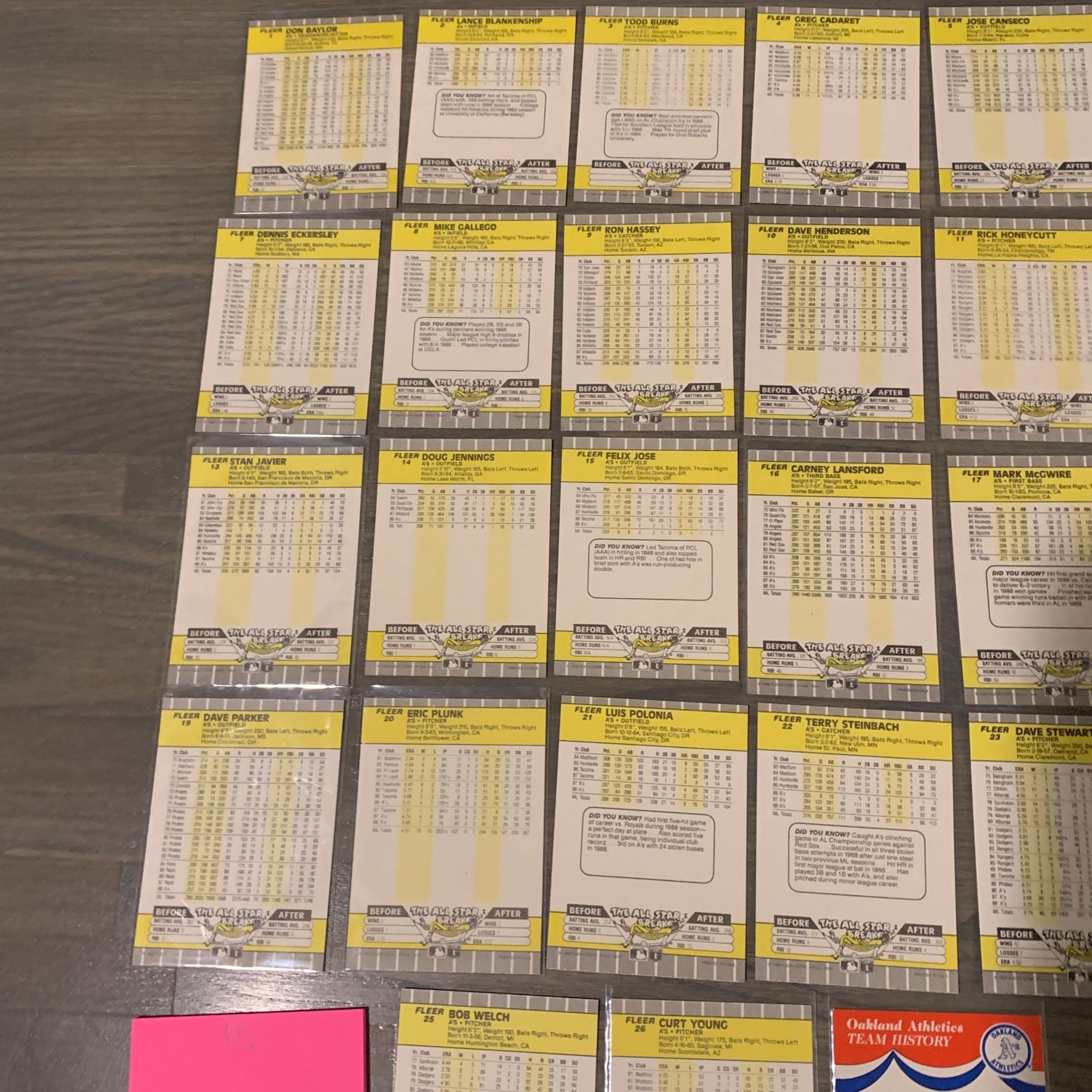 Fleer 1989 Athletics Baseball Cards. #1-26. Carney Lansford #16, Storm Davis #6, and Rare Athletics Team Sticker Card. See Photos for conditions. See photos for condition. If you are interested in consigning with us, email aeronhouse1994@gmail.com or fill out the consignment form on ahauctionhouse.com