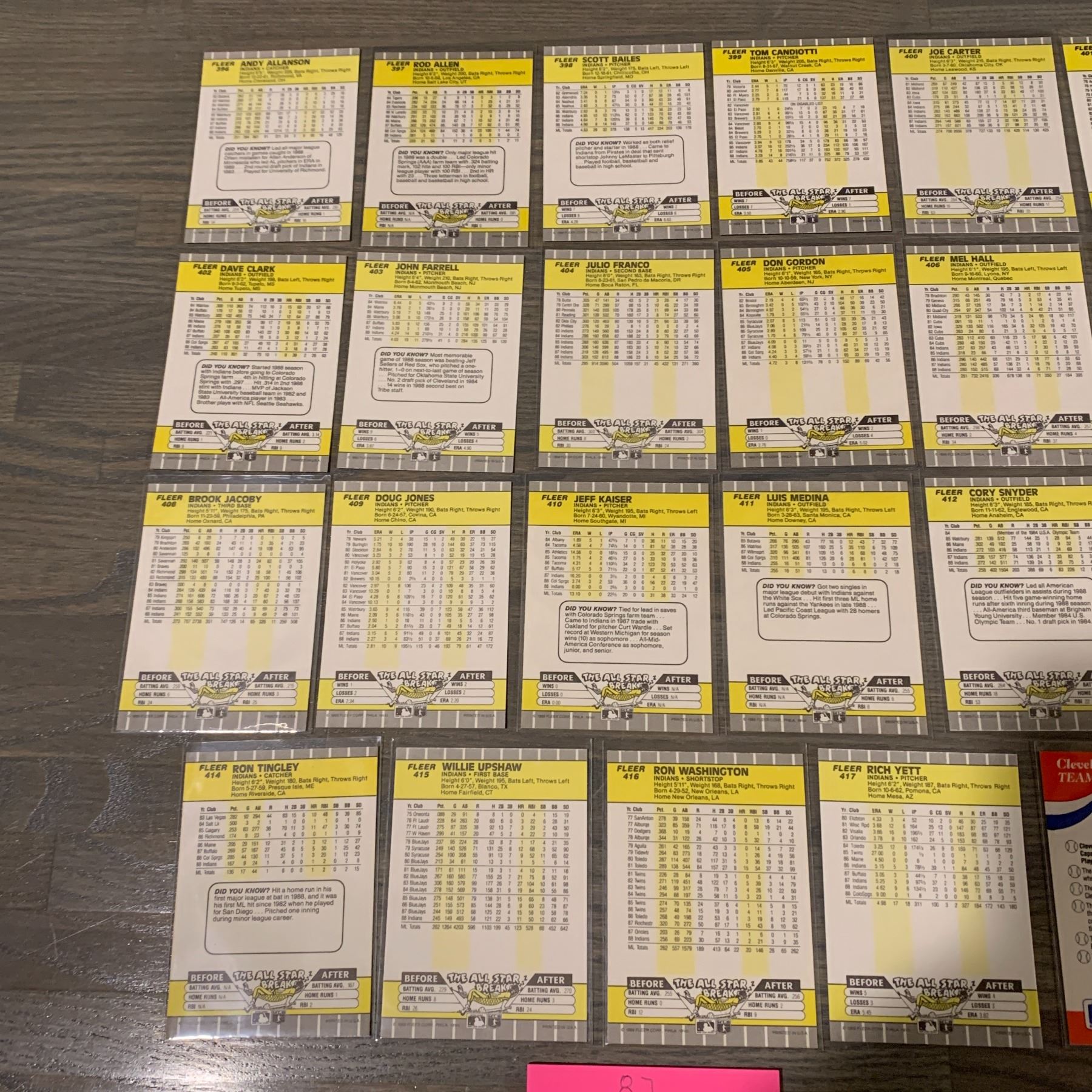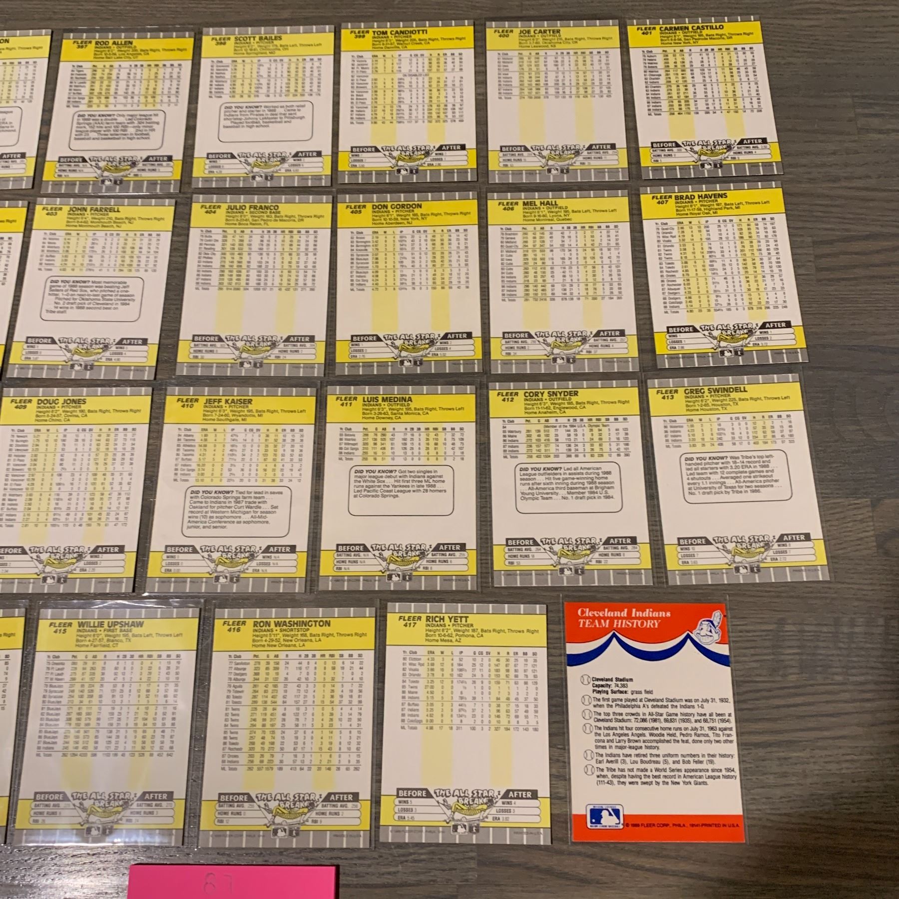 Fleer 1989 Indians Baseball Cards. #396-417. Rare Indians Team Sticker Card. hana.k.lewis.civ@health.mil