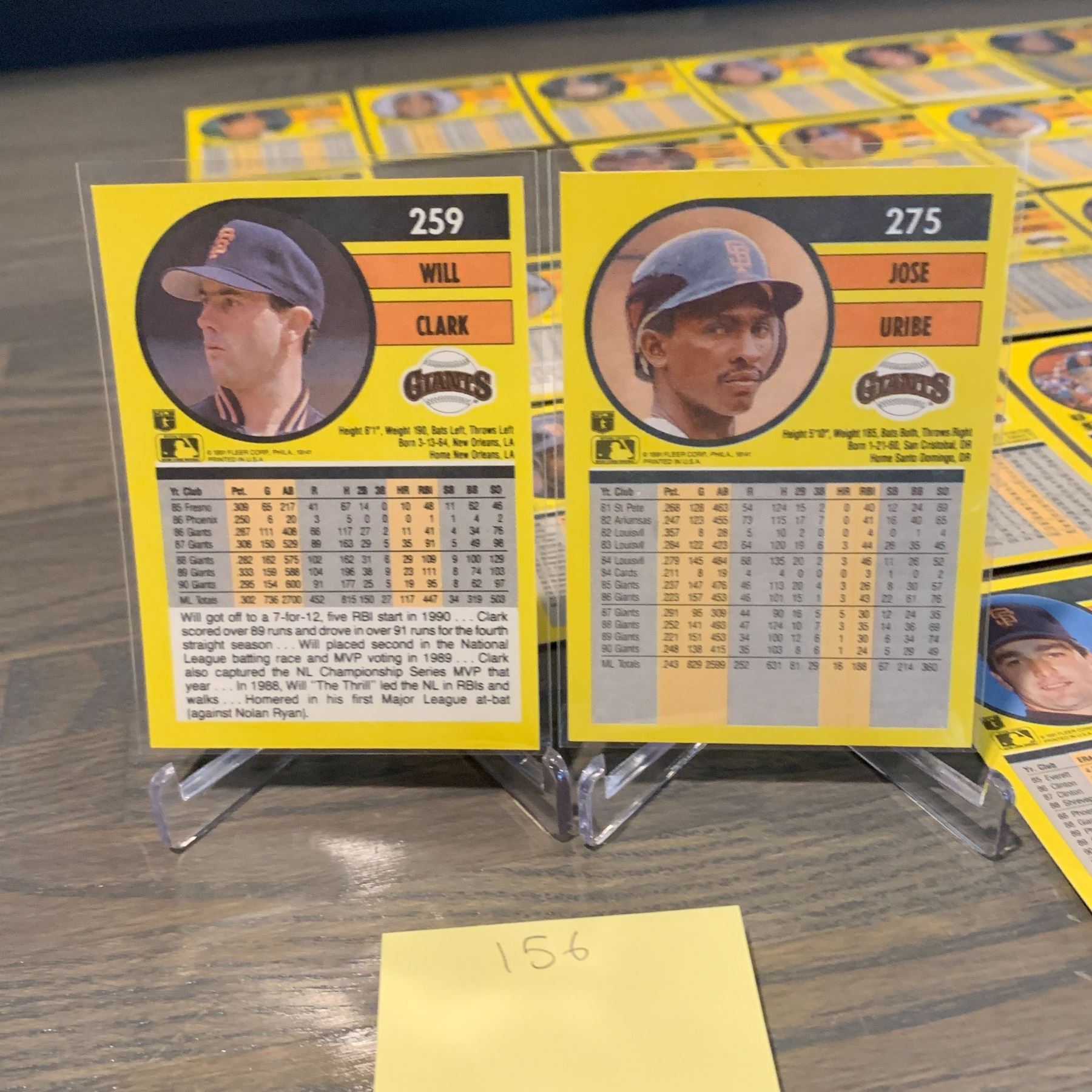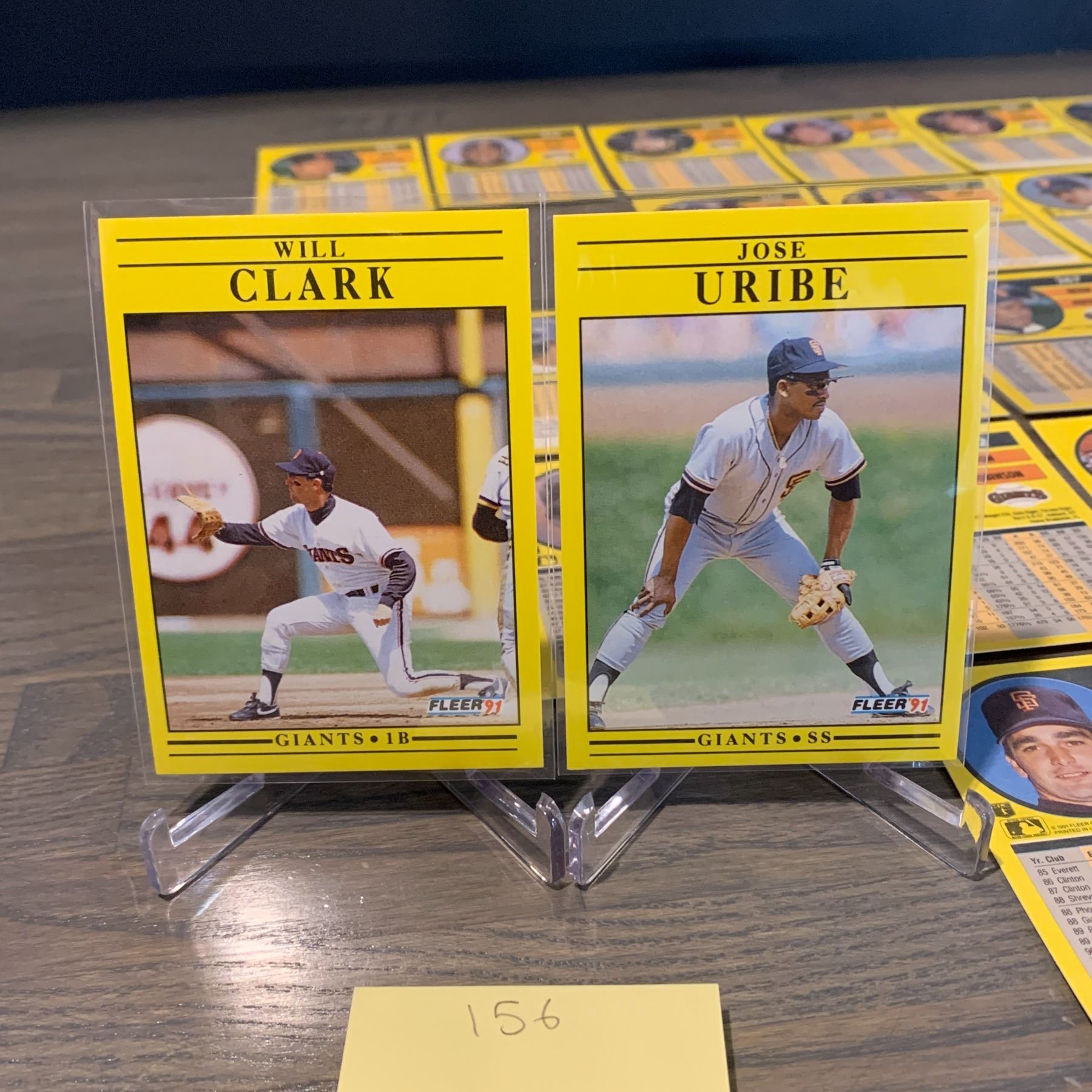 Fleer 1991 Giants Baseball Cards. Will Clark #259, Jose Uribe #275. See photos for condition. If you are interested in consigning with us, email aeronhouse1994@gmail.com or fill out the consignment form on ahauctionhouse.com