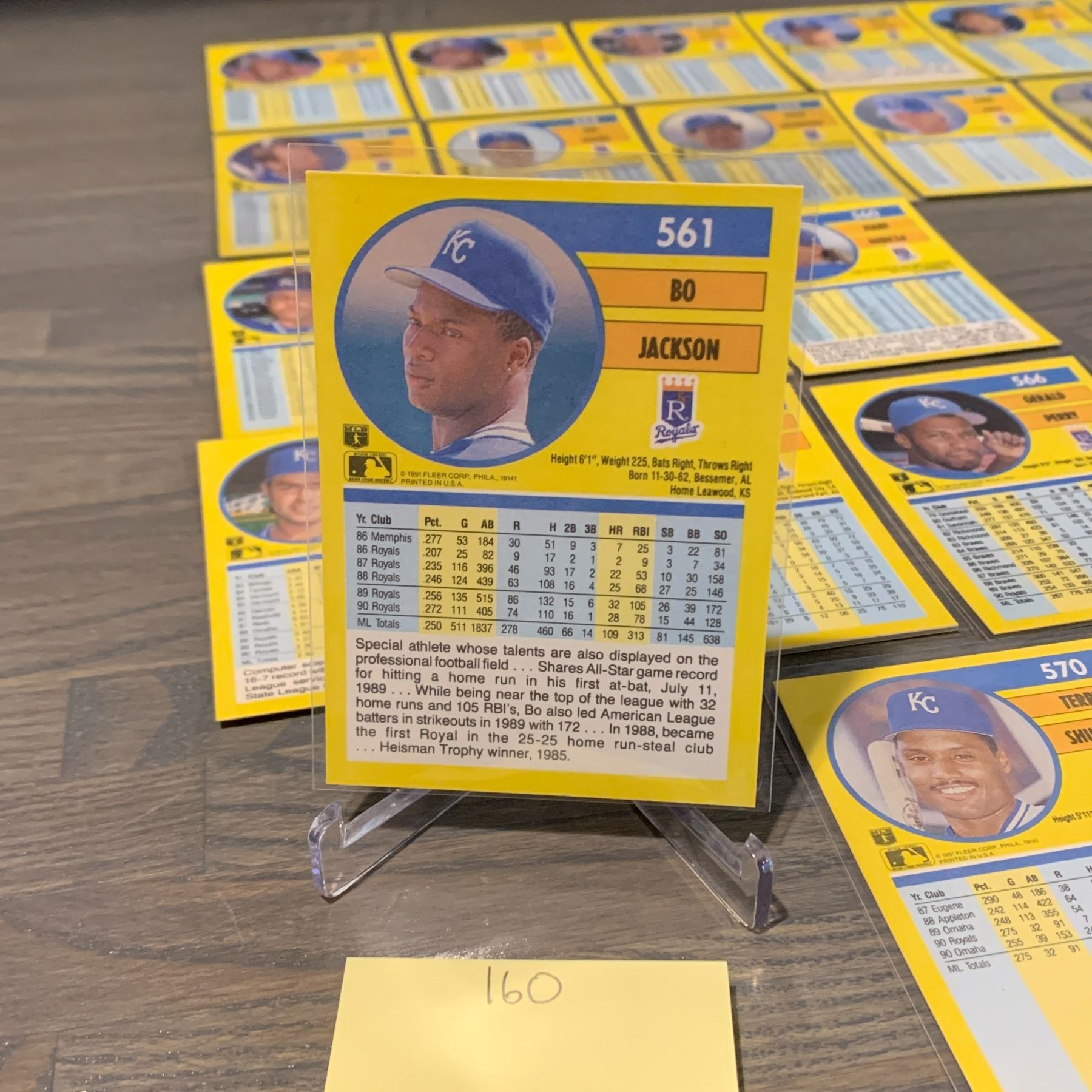 Fleer 91' Royals Baseball cards. Bo Jackson #561. See photos for condition. If you are interested in consigning with us, email aeronhouse1994@gmail.com or fill out the consignment form on ahauctionhouse.com