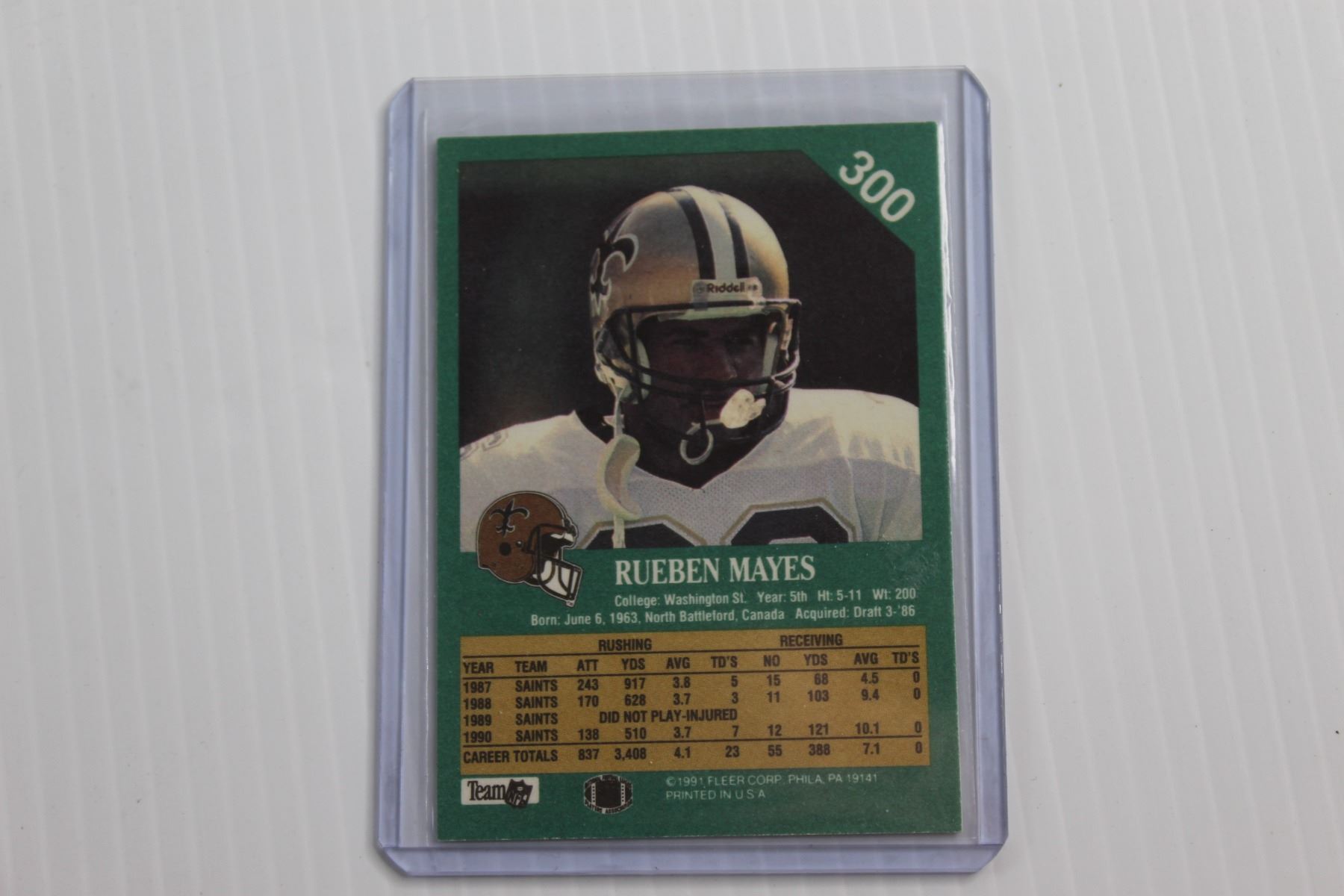 Fleer 91 Saints RB Rueben Mayes American Football Trading Card - Authenticity Not Guaranteed