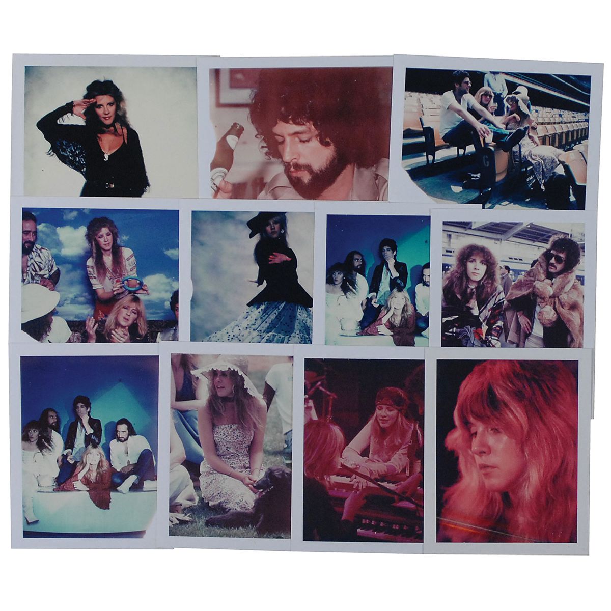 Eleven color glossy modern reprints of 1970s candids, 3.25 x 4.25 and 4.25 x 3.25, showing the members of Fleetwood Mac in various interesting poses. In overall fine condition.
