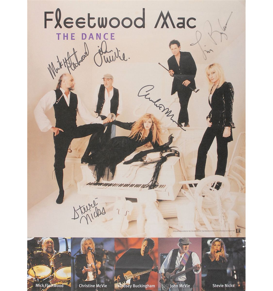 Color 18 x 24 promotional poster for The Dance, signed in black felt tip by Mick Fleetwood, John McVie, Christine McVie, Lindsey Buckingham, and Stevie Nicks. In fine condition, with horizontal creasing and Buckingham’s signature a shade light.