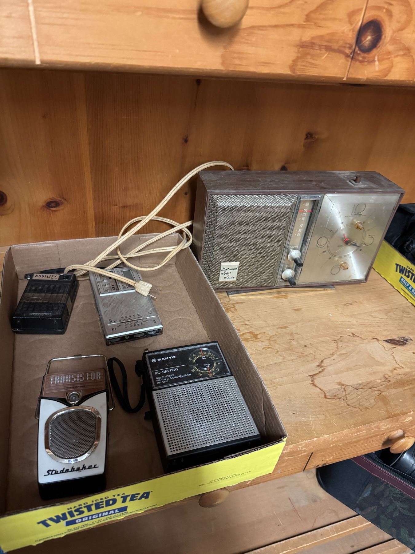 Fleetwood solid State clock radio, transistor, radios, etc.