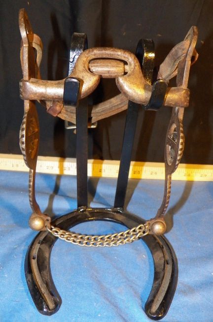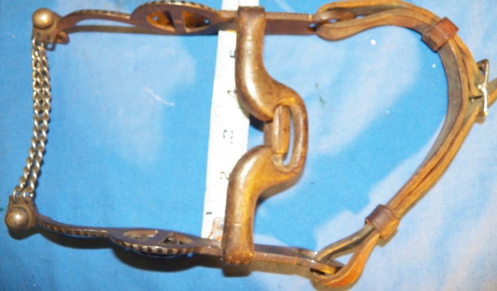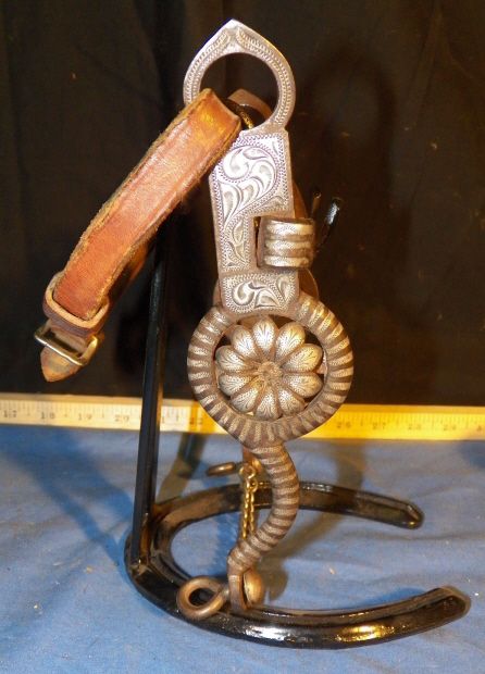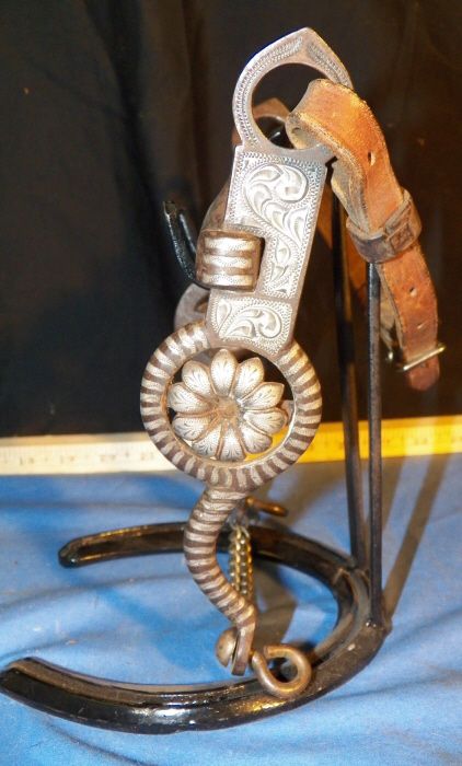 Cactus Flower Cheek marked Fleming Silver inlaid Bit Vintage made of Iron