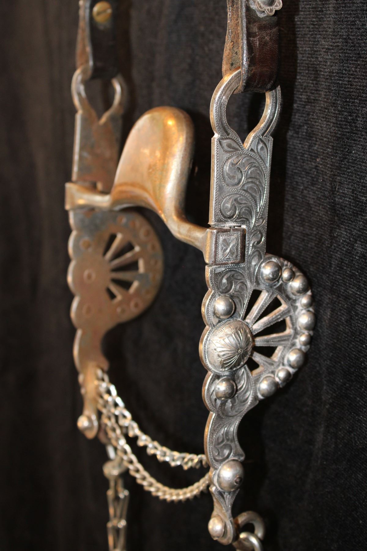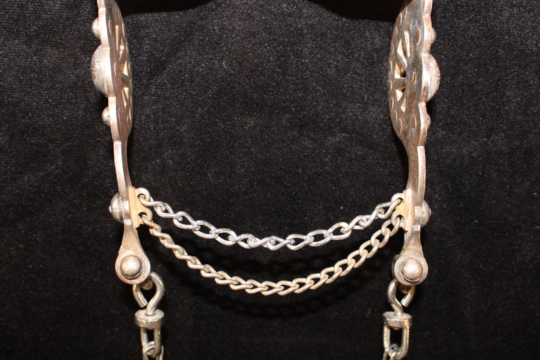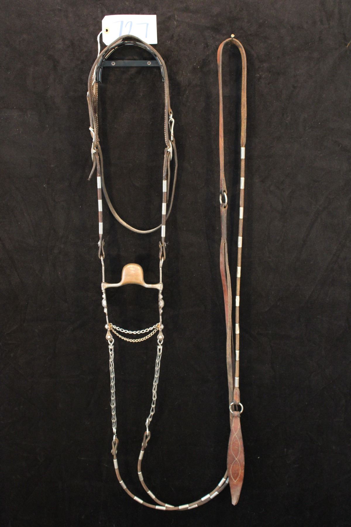 Rein & romal w/ ferruls, santa barbara pattern cheek, slobber chains