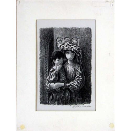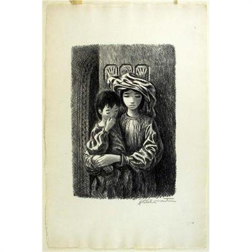 Fletcher Martin (1904-1979) Lithograph, Mother & Child, image size 12" x 7 3/4", pencil signed
