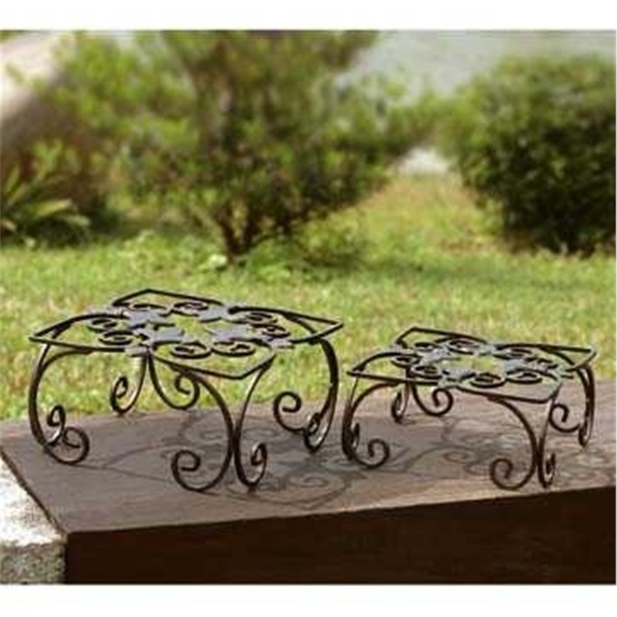 Fleur De Lis Square Planter Set Of 2 - 6.5"H 13"W 13"D - Iron Plant Stands - Set Of 2