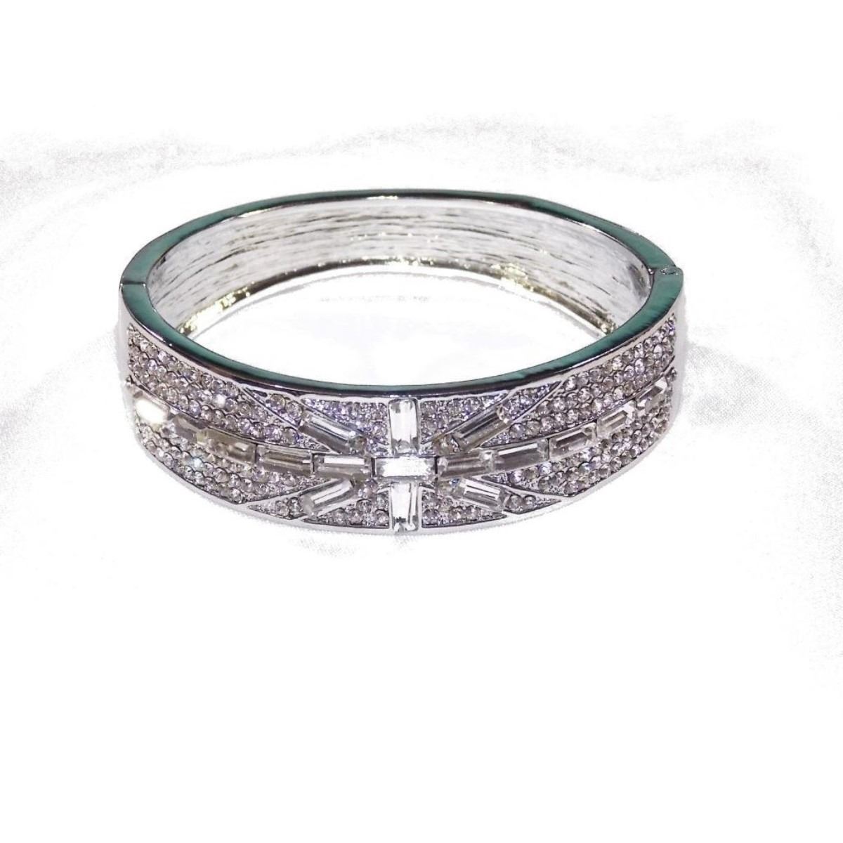 Upscale Designer Jewelry (Costume) Color: Clear Metal: Alloy Material: Glass Style: Cuff Length (inches): 8"l(adjustable) Main Stone: Rhinestone - 10074-040618-EB-95696