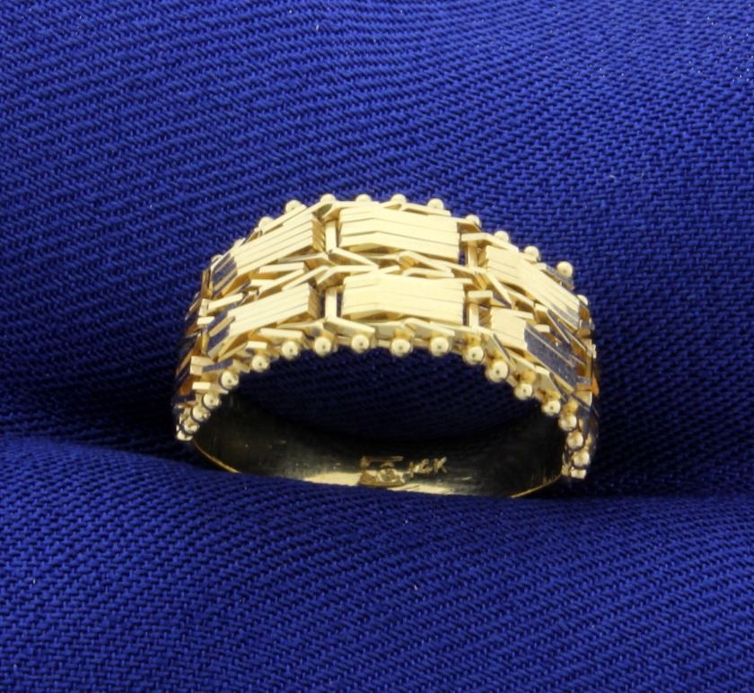 Top half of ring is flexible with unique design that reflects light. Approx. 3/8 inch at center. Size 8 3.8g