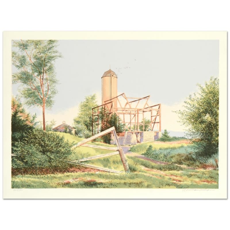 "Flight From a Towering Nest" is a limited edition serigraph on paper by William Nelson, numbered and hand signed by the artist! Measures approx. 28" x 21" (with border); 25.5" x 18.5" (image).