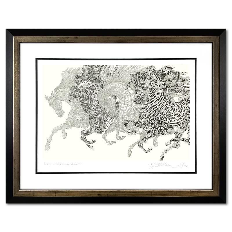 "Flight" is a limited edition etching on paper by Guillaume Azoulay, PP numbered 1/1 and hand signed by the artist. This piece comes custom framed. Includes Letter of Authenticity. Measures approx. 29.5" x 24" (frame), 20" x 14" (image).