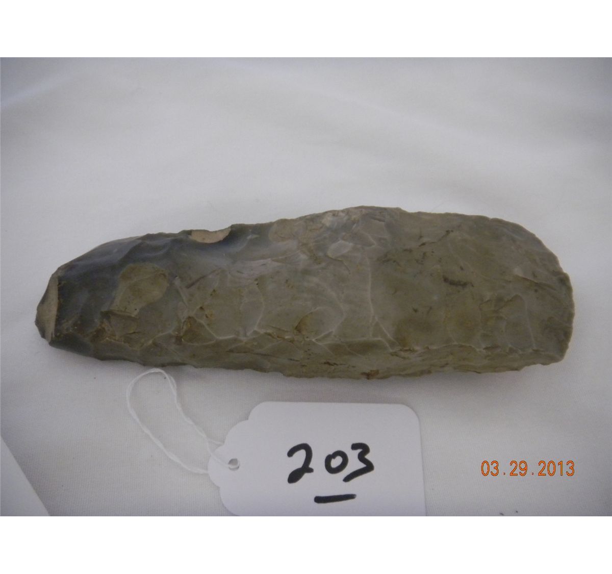 Flint Celt from England, 3000 years old, measuring 7 1/2 by 2 1/2 inches. Grey flint, Shipping $15.00. Condition Very good