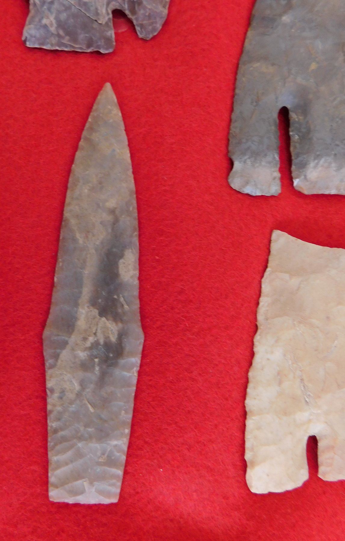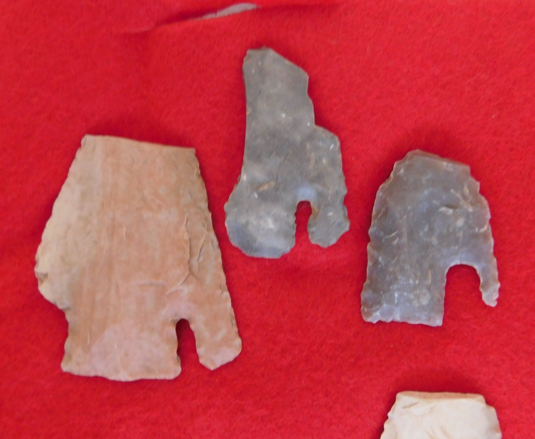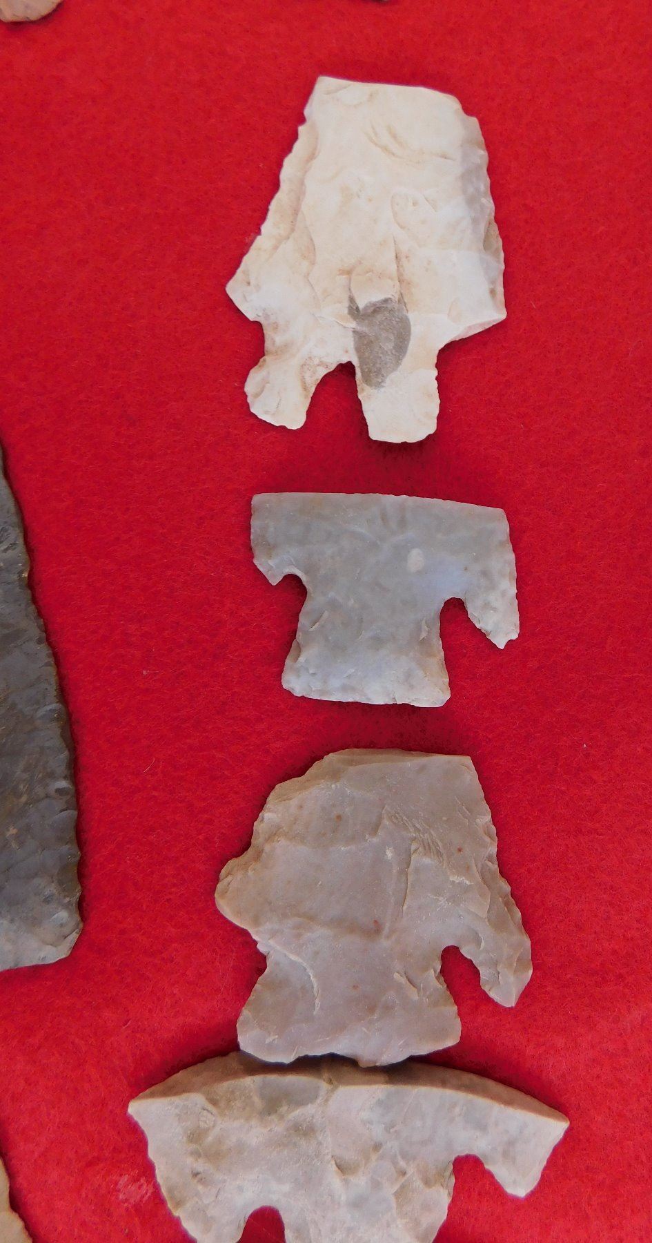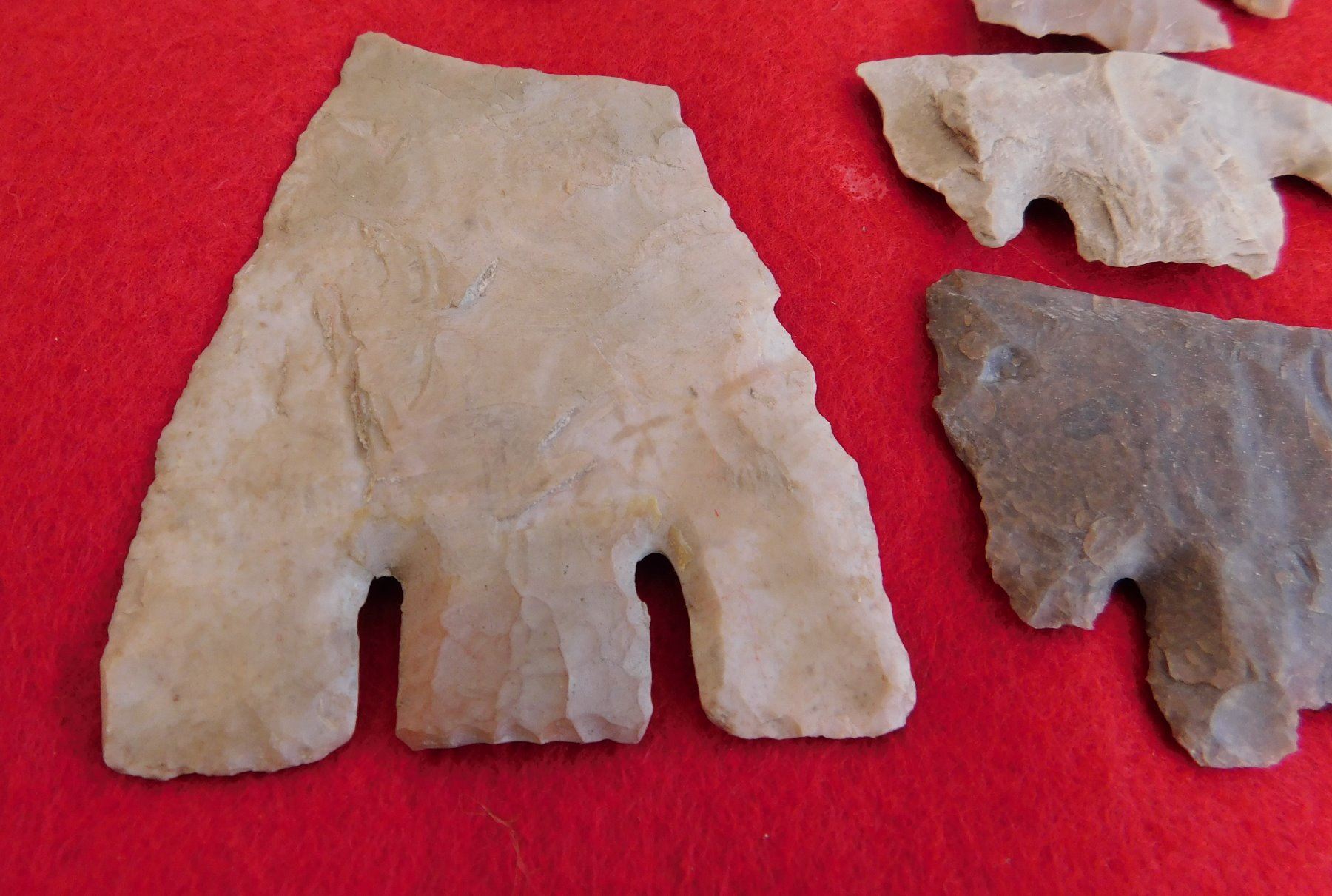 Flint Collection, pre-historic items. Made of chert, the longest point measures 4". Bell County, Texas. Fine Andice. Frame not included. Condition: Most are damaged, see images. Shipping: $25.00 w/insurance and signature, due to value.