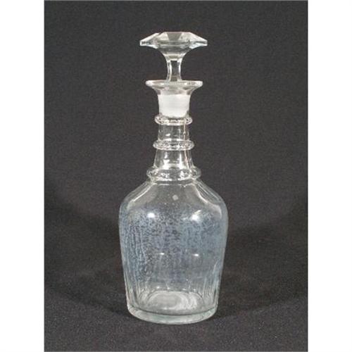 Clear Flint Glass Decanter, American, c. 1825 - Mold Blown with applied faceted bands to the neck, petal paneled shoulder and base, with later stopper. Decanter is 11.25"h, Height with stopper - 13.5"h