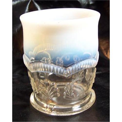 Up for your consideration is a White Opalescent Tumbler in Shell & Wreath (aka No. 905 Manilla) by Model Flint Glass Co.: