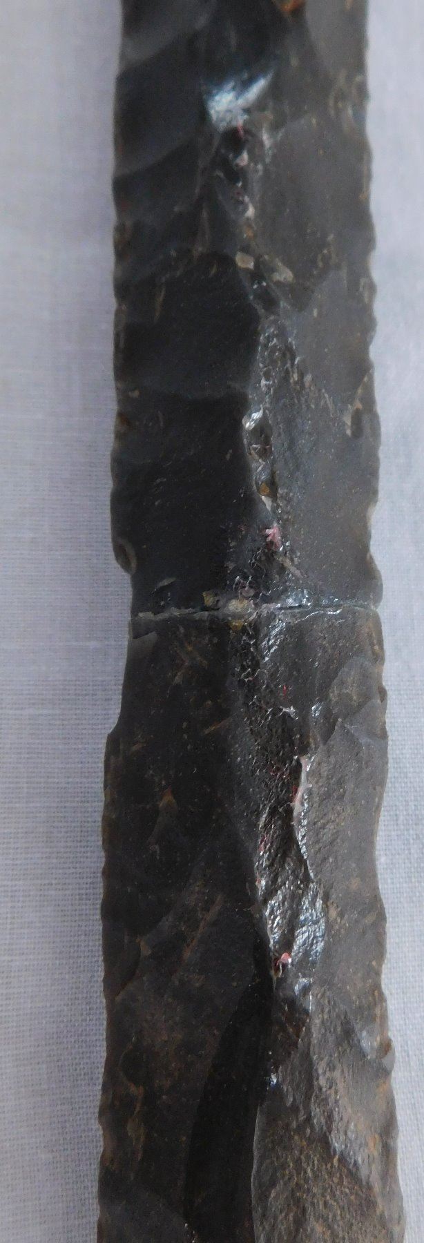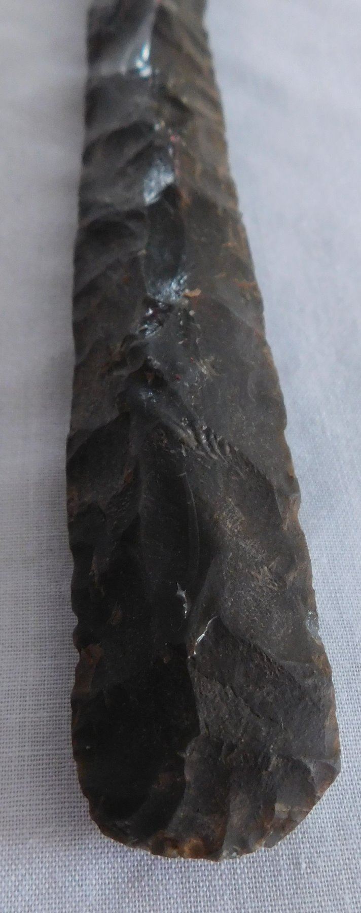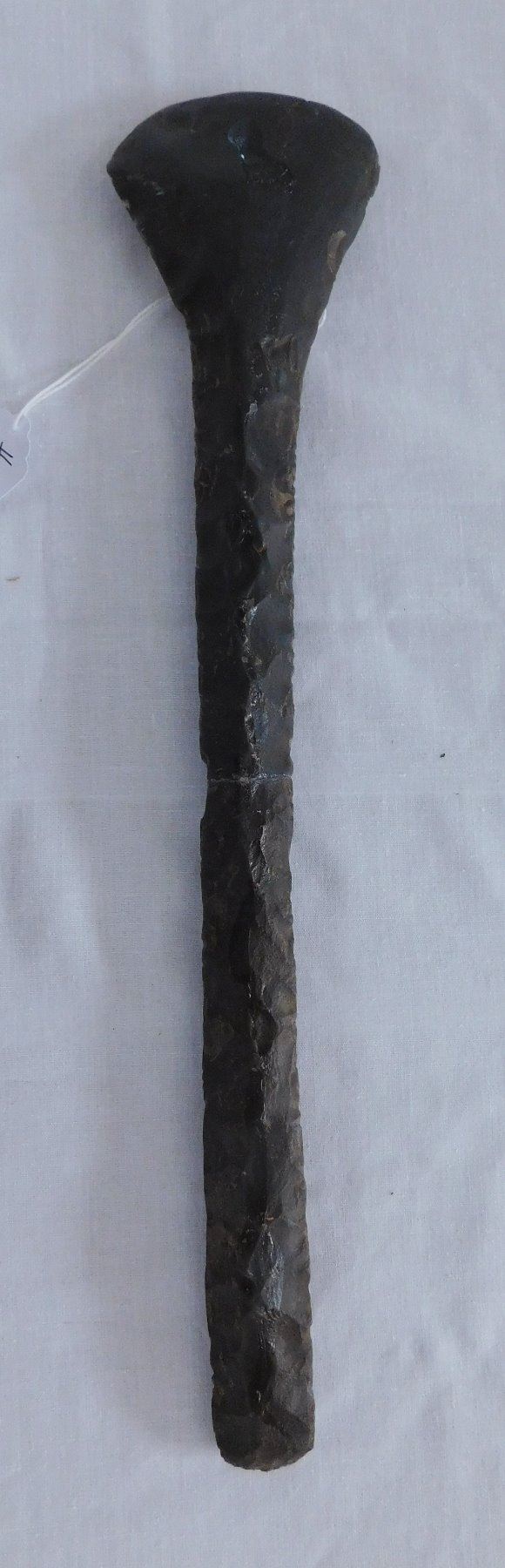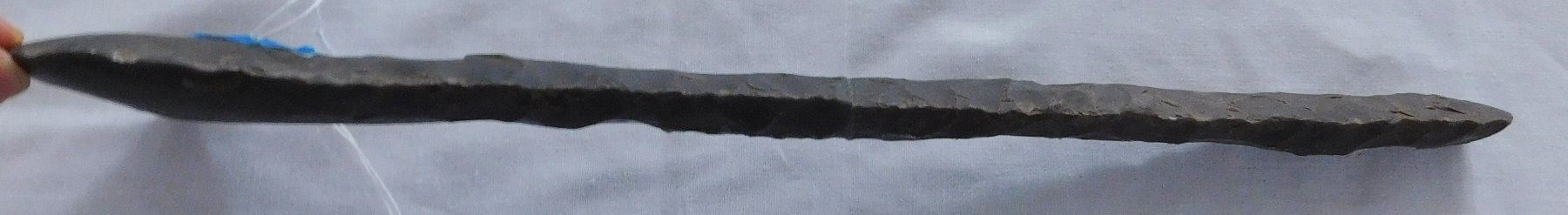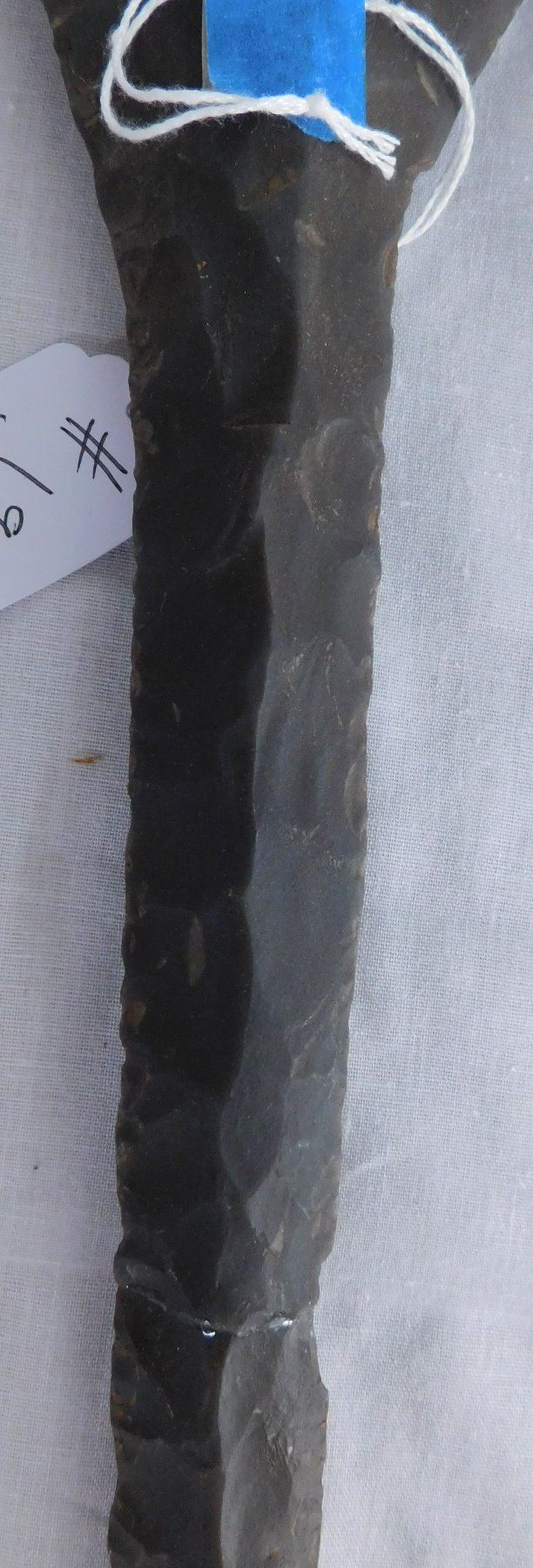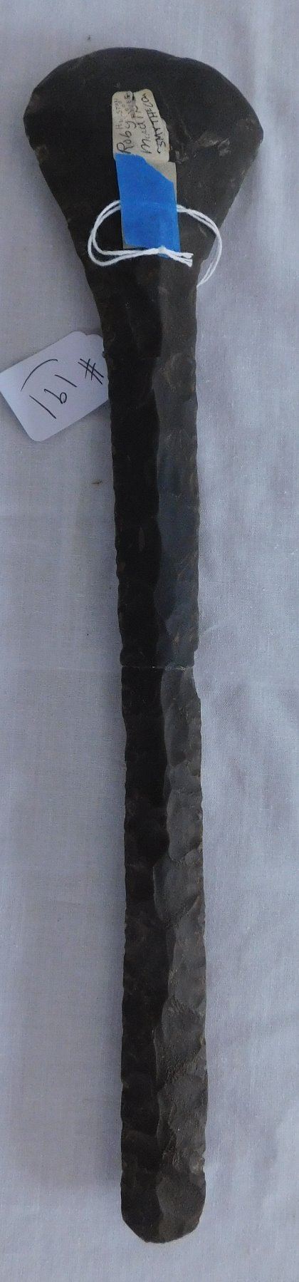 Flint Scepter, pre-historic item. Made of chert, the item measures 16" x 3.5" x 1". Smyth County. Condition: Found in two pieces, glued, see images. Shipping: $45.00 w/insurance and signature, due to length and value.