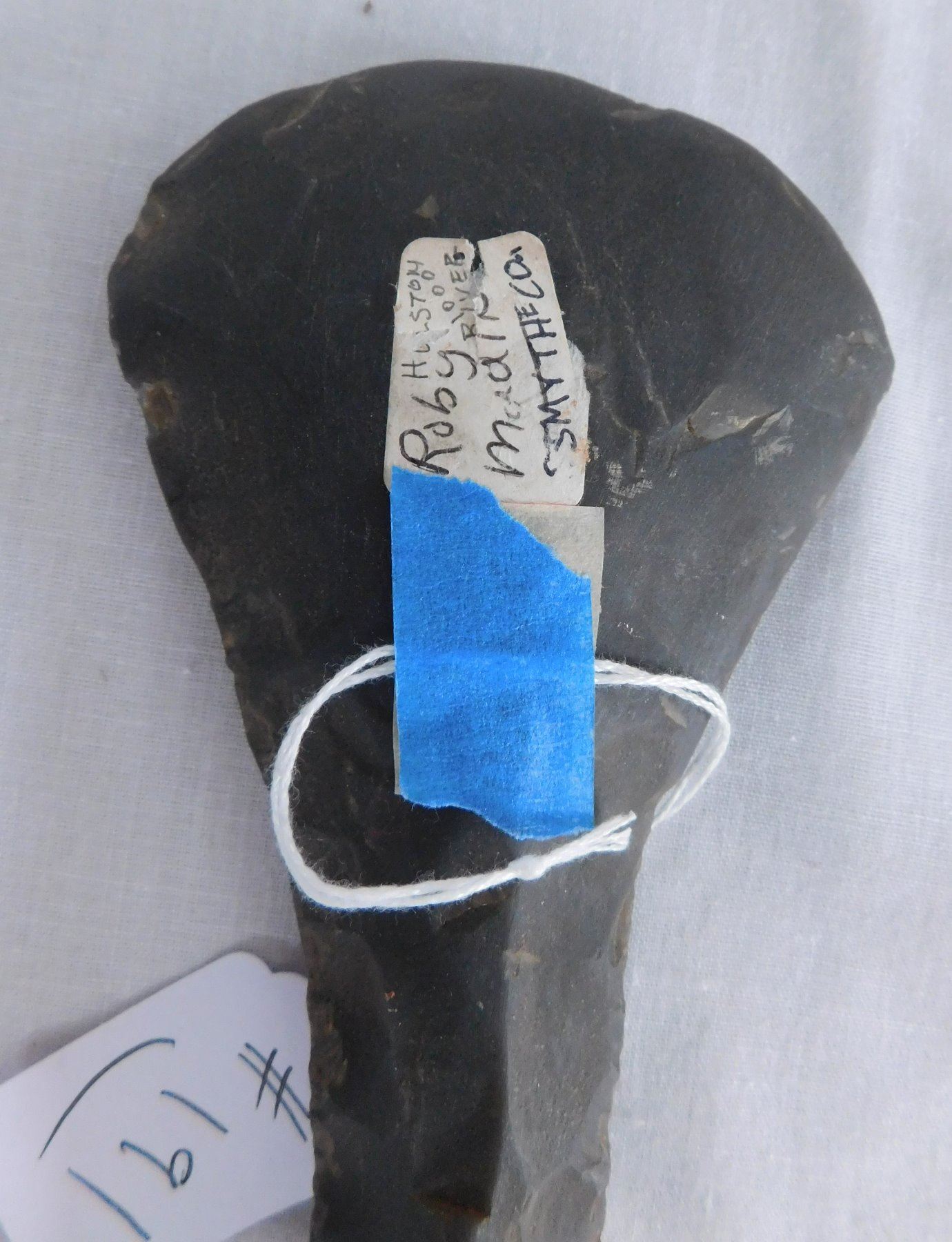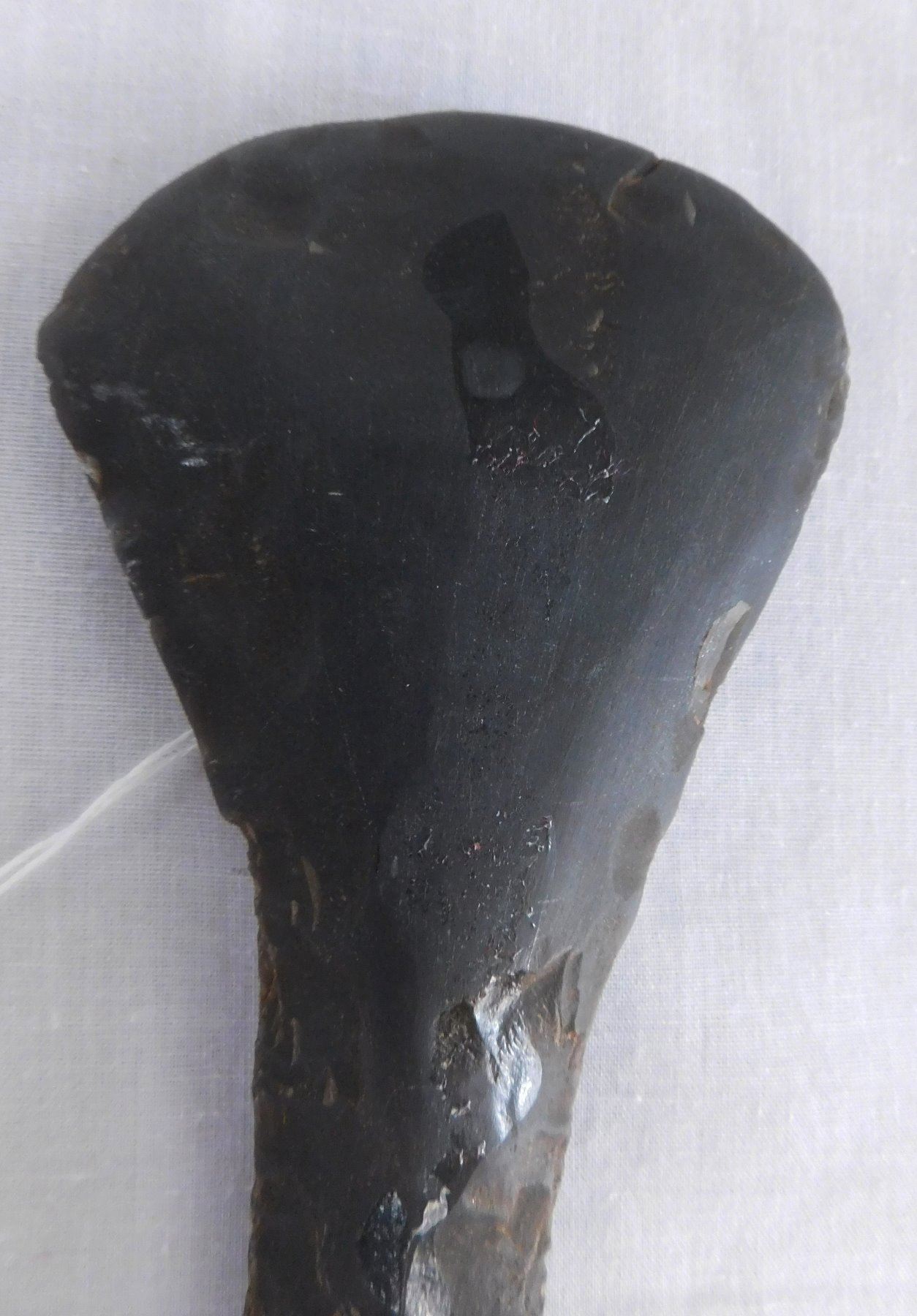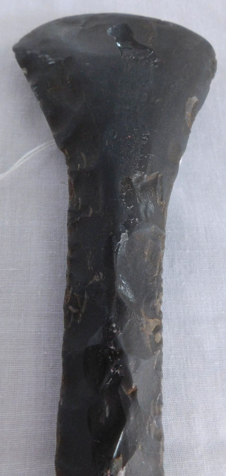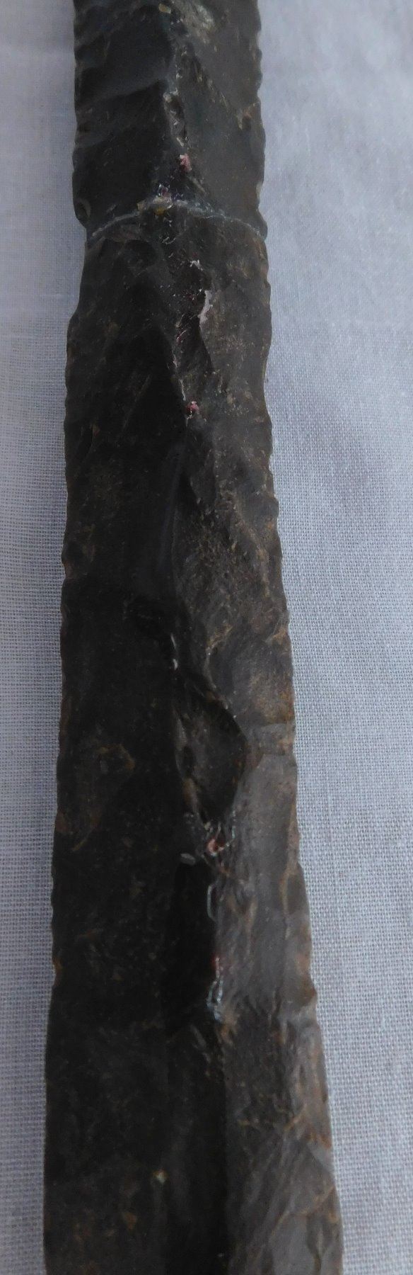 Flint Scepter, pre-historic item. Made of chert, the item measures 16" x 3.5" x 1". Smyth County. Condition: Found in two pieces, glued, see images. Shipping: $45.00 w/insurance and signature, due to length and value.