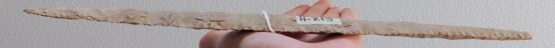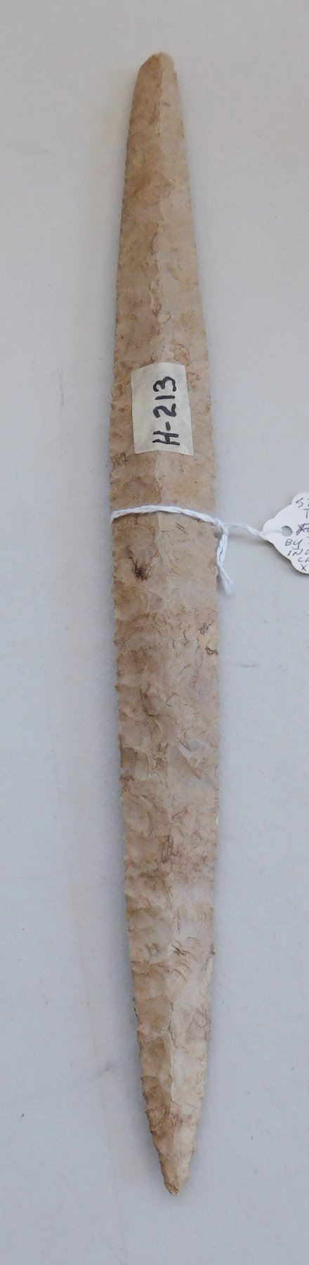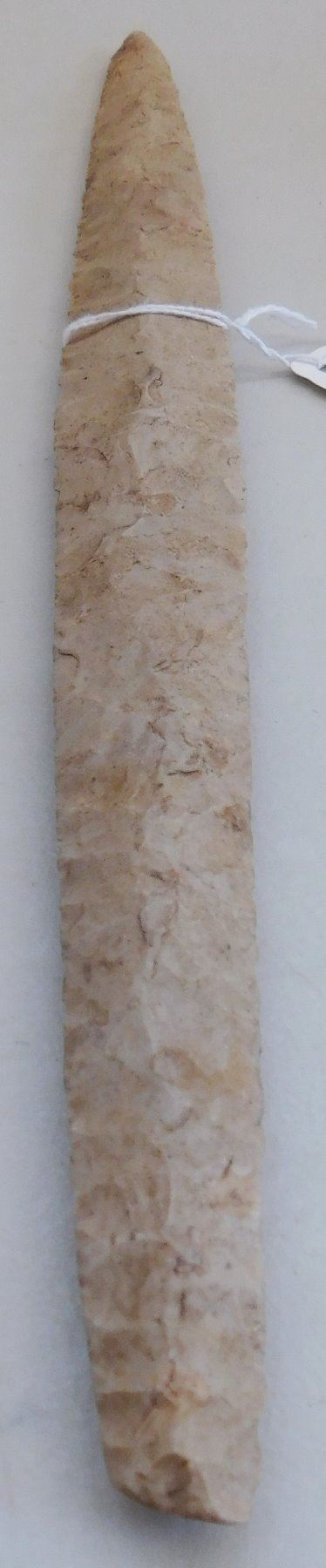 Flint Sword, pre-historic item. Made of chert, the item measures 15 1/4" x 1 1/2". Stewart County, Tennessee. Found in 1953. Condition: Good, see images. Shipping: $40.00 w/insurance and signature, double-boxed, due to length and value.