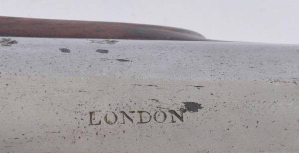 London. Mortimer Mfg. Very good condition. Officer's pistol, checkered grips, inspectors stamp left side of barrel.