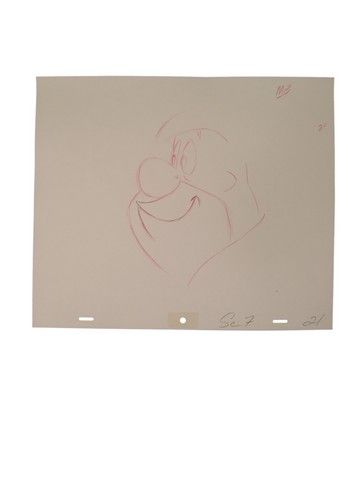 Perhaps no animation character showed more joy for the simple things in live than Fred Flintstone. From the Hanna-Barbera Studios in Hollywood this is an original pencil animation production drawing of a joyous Fred drawn on registration keyed animation paper. It has animator's notations including the cell number #21, and Sc7. Approx. 12"x11.5". Comes with a COA.