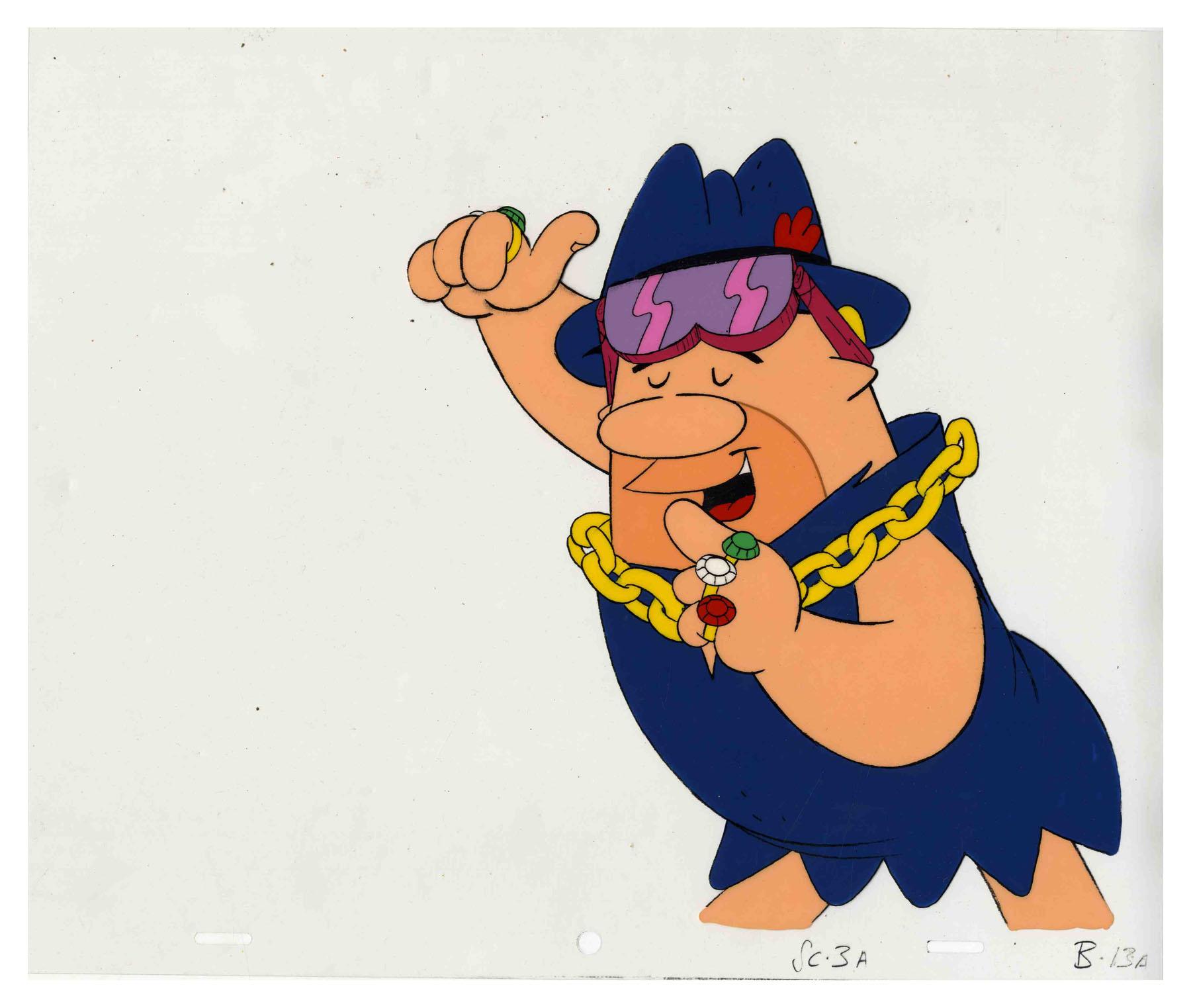 Barney Rubble animation cel from ''The Flintstones,'' created in 1960 by television heavyweights William Hanna and Joseph Barbera. Rubble, the next door neighbor to the series' main character, Fred Flintstone, was voiced by famed voice actor and comedian Mel Blanc, ''the man of a thousand voices.'' Cel is labeled ''SC-3A / B-13A'' in black marker on bottom right. Measures 12.5'' x 10.5'' with three file holes along bottom edge. Overall near fine condition.