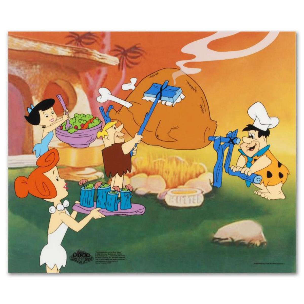 This truly wonderful collector's item from America's animation pop culture will bring cheer to fans of both past and present! "Flintstones Barbecue" is a limited edition sericel with a full color background, officially licensed by Universal Studios Licensing and Hanna-Barbera! Includes Certificate of Authenticity! Measures approx. 12.5" x 10.5" (sericel and background). Reference #: 200776.
