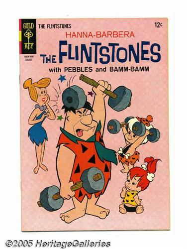 <B>Flintstones File Copies Group (Gold Key, 1963-68) Condition: Average FN/VF.</B></I> 'Stones fans, this is for you! Approximately 65 Gold Key 12¢ issues of <B>The Flintstones</B></I> are in this lot. All are Western Publishing files copies, and many are in multiples of 3-15 issues. While some may exhibit corner folds and other minor storage mishaps, most appear to be brand new, with exceptional color, gloss, and paper quality. Place the winning bid and you too will be saying "Yabba Dabba Doo!" Approximate Overstreet value for group = $1,800. <I>From the Random House Archives</B></I>.
