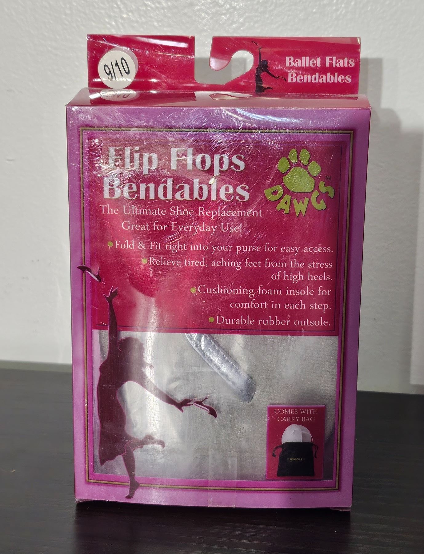 Bendable flip flops with their own carrying bag. The ultimate shoe replacement for when you're in need. Size 9/10. Color Silver