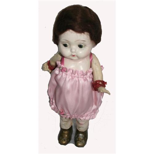 Flirty Eyes Doll - Eyes move from side to side when mechanism is wound.  Composition body with gold painted shoes and socks.  Damage to right leg.  Other crazing.   New clothes.