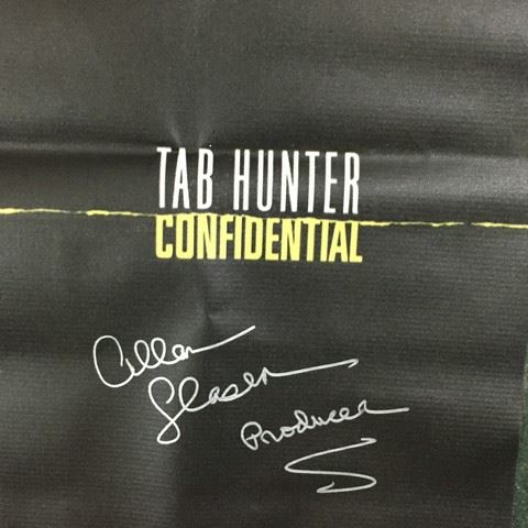 Flix Philadelphia Goes Hollywood, Tab Hunter Lifetime Achievement Award 2015 banner promoting the film premiere of Tab Hunter's movie: Confidential. Signed "Many Thanks" by Tab Hunter and also signed by Producer: Allan Glaser (approx. 30" x 46").