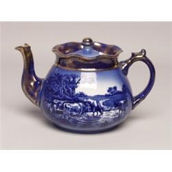 Flo-Blue 19th C. Teapot by Arthur Wood hirline Crack 2"long to Body