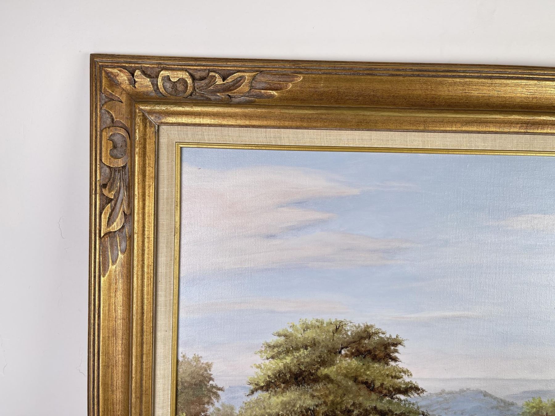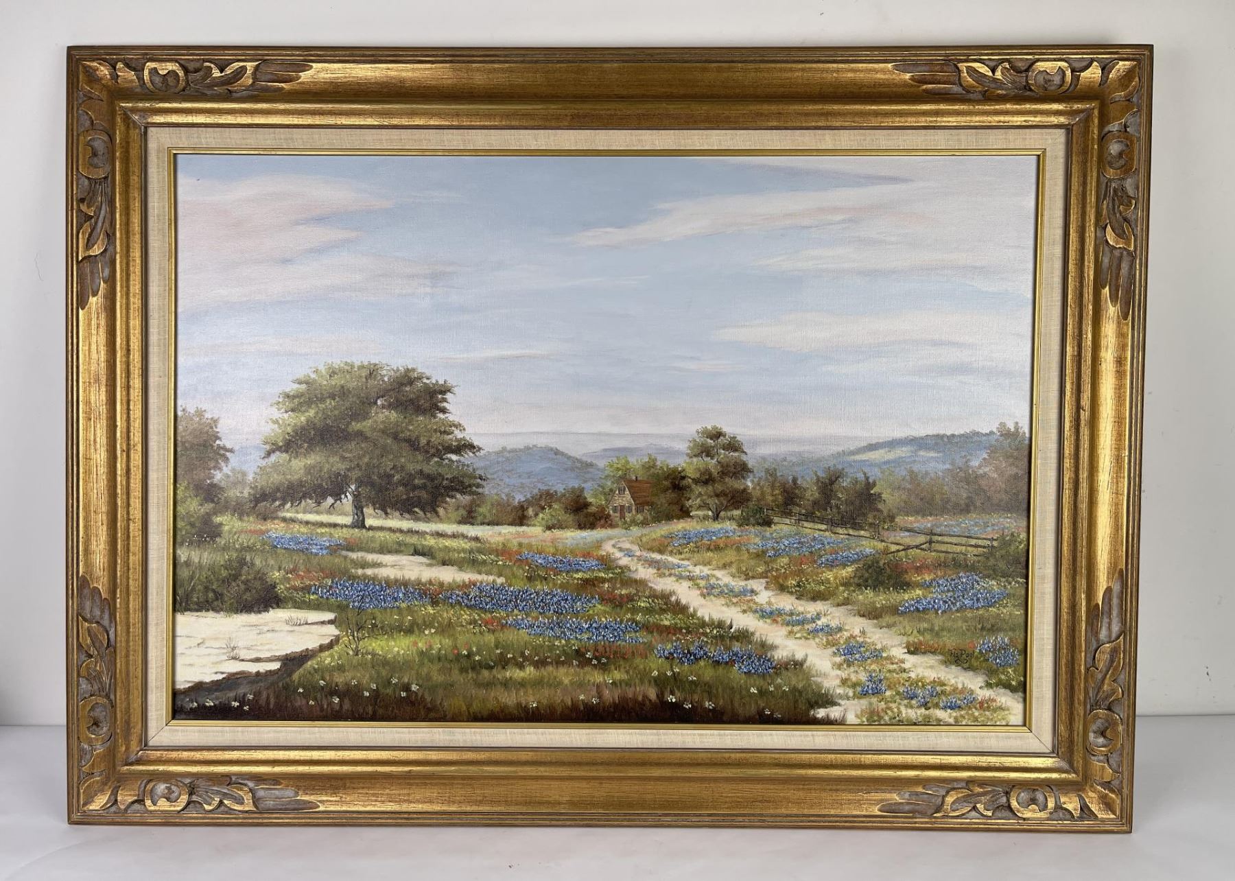 Nice large painting. Has tag on back as shown. 32"by 44.5" framed.