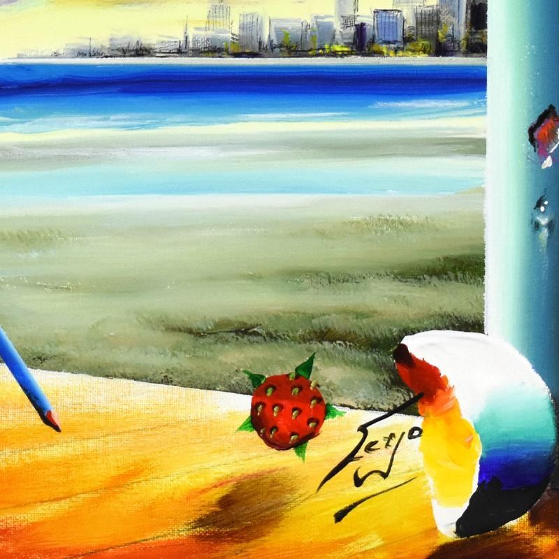 "Floating Crying Girl" is an original oil painting on stretched canvas by Ferjo, hand signed by the artist. Includes Letter of Authenticity. Measures approx. 20" x 16" (image).