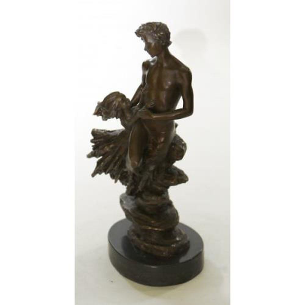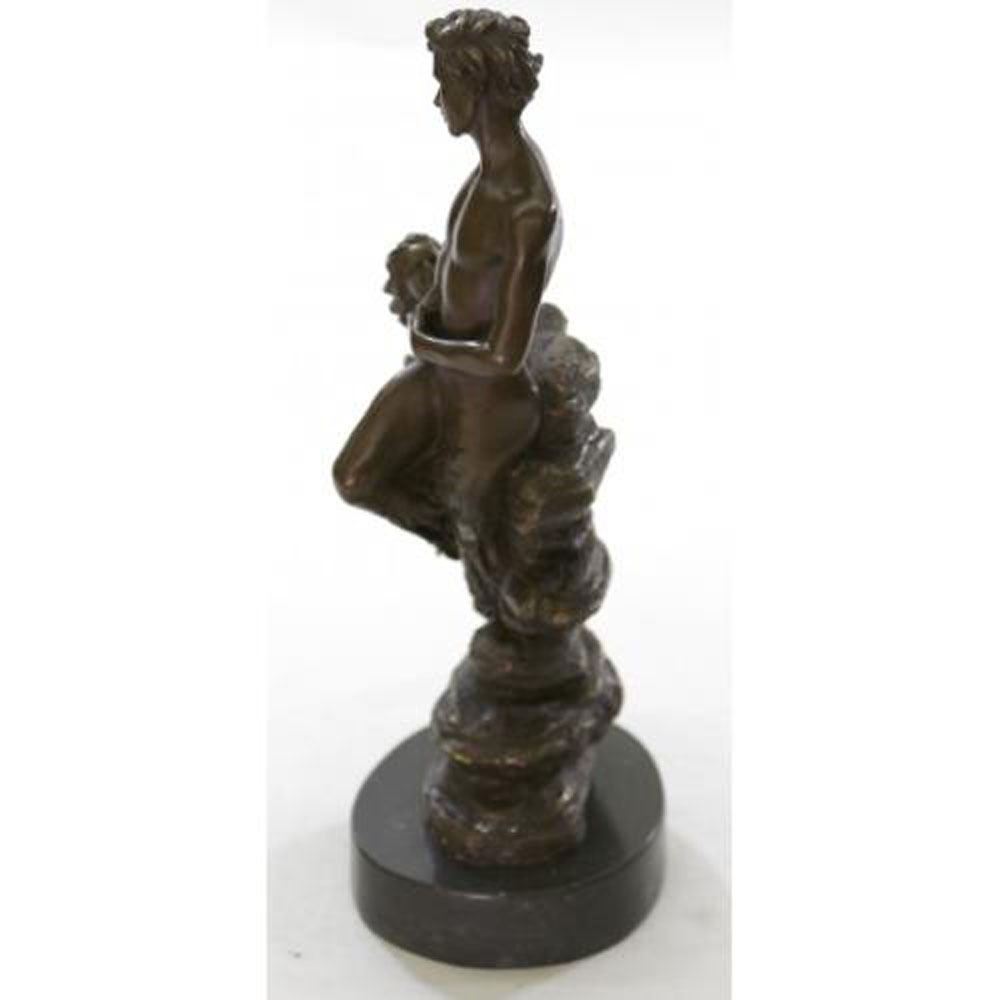 Floating Man is a recurring figure sculptured. The Mescaline male figure is a variation of the Striding Nude, holding his baby in the air. While focuses on the subject of emotion and speed, and evokes the meditative silence and contemplation. The expressive sculpture is suitable for both indoor and outdoor use and with the brown patina the sculpture seems to be artificially aged and generates a moment of eternity. The sculpture brings an atmosphere of inner peace and cuts a fine figure on private or business premises. Bronze Dimensions with Marble Base: Height 13 X Width 8 Inches. Weight: 10 LBS.