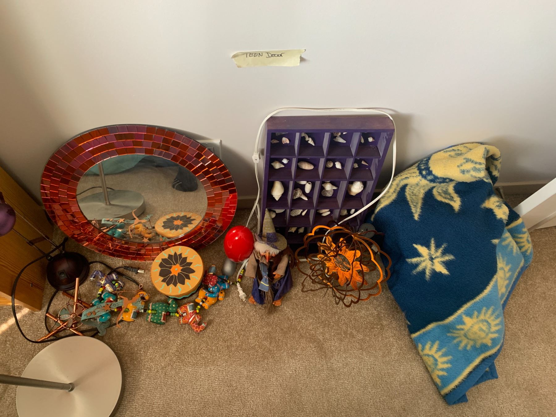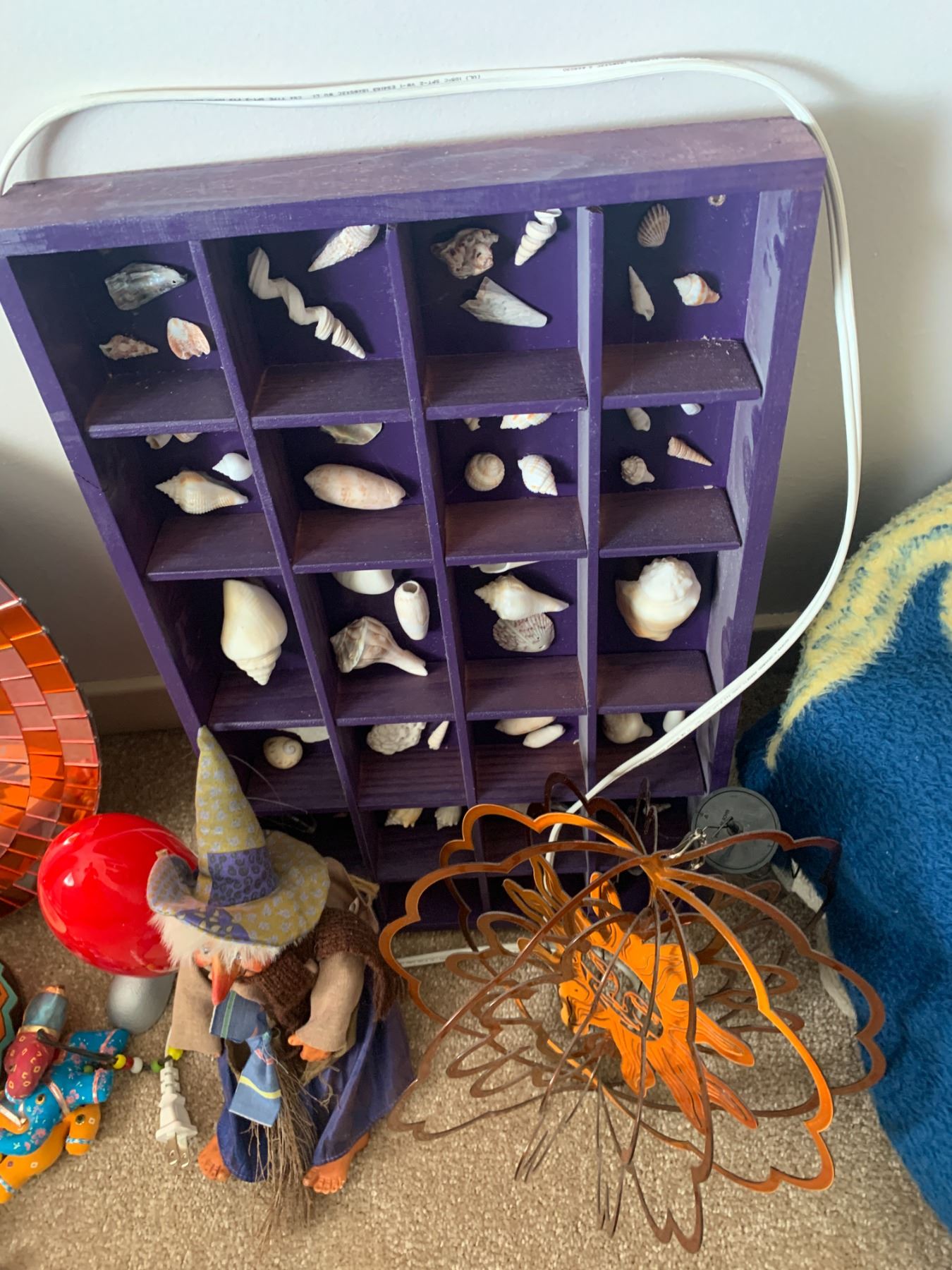 Includes 2 x metal-framed purple lamps (floor lamp and desk lamp), beautiful seashell collection, decorations, and more!