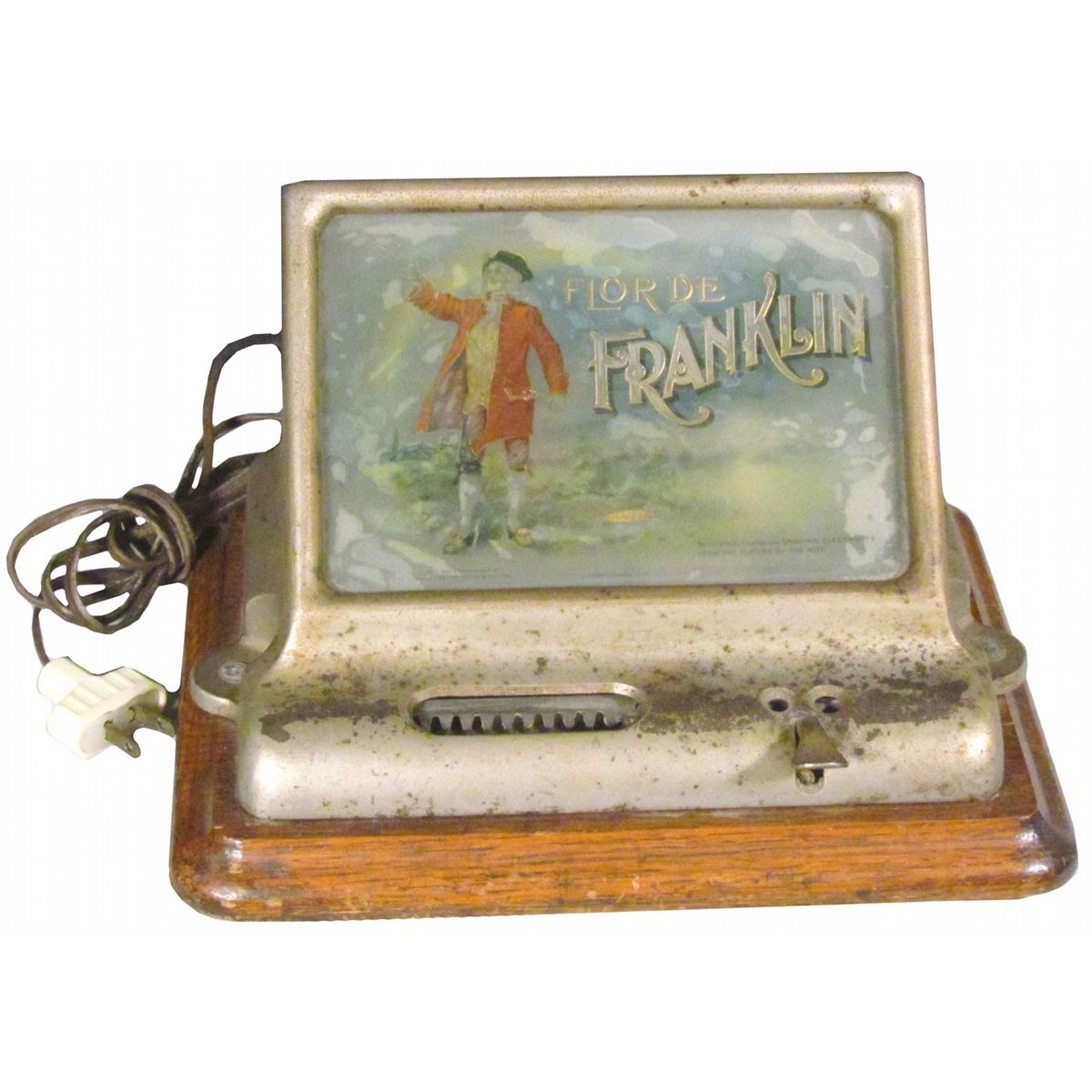 Very Rare Flor De Franklin Cigar Lighter and Cutter. Back light reverse glass front. Lighter is electric. Very good original condition. 11 X 7 X 8 inches.
