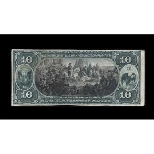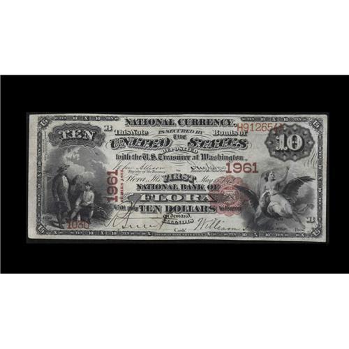 <B>Flora, IL</B></I> - $10 1875 Fr. 416 <B>The First NB</B></I> Ch. # 1961<BR>Most of the original color and the signature remain strong on this Series 1875 $10. Evidence of restoration is seen on the right side of the note. Only a handful of large size notes are known on this bank.