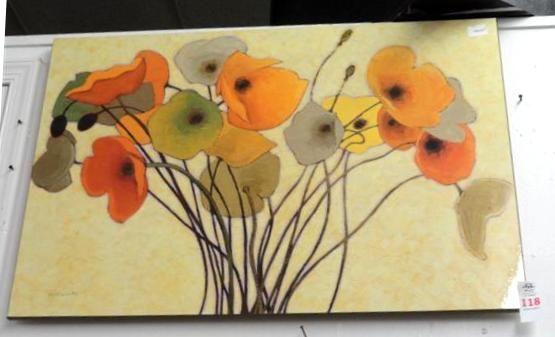 Floral Art - Pumkin Poppies I Laminated On Board -by Shirley Novak 42.5" x 32.5"