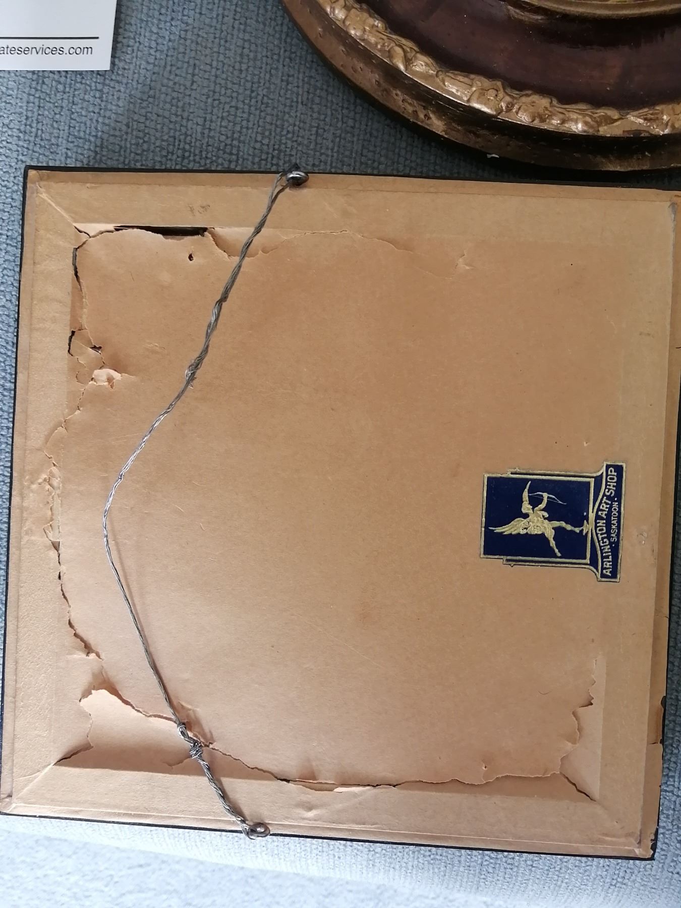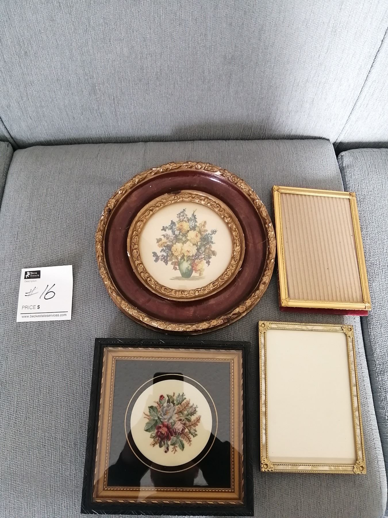 Framed needlepoint artwork; measures 7.75" x 7.75"