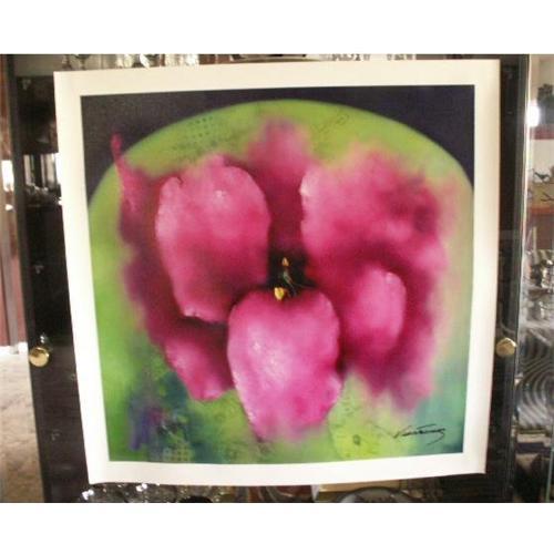 FLORAL AWAKENING: Renowned MEXICAN ARTIST: VICTORIA MONTESINOS <p>Presenting a limited edition, signed and numbered (#175/275) Montesinos amazing imagery, texture and vibrant colors through the imagination and talents of, Mexican born artist, Victoria Montesinos. She is the daughter of a renowned Mexican movie director Fernando A. Rivero. Trained in Mexico and France and worked with surrealist painter, Leonora Carrington. Her style continues to evolve through various mediums, textiles, paintings and serigraphs. Victoria paints primarily flowers and her viewers are forced to step into the world of flowers and peel away the infinite layers,passages and colors akin yet more surreal than O'Keefe's fascination with the world of nature and flowers.<p>Victoria's work has been exhibited since 1972 and has been shown in galleries in the United States, New York City- California, as well as internationally.<p>Hallmarked, original hand signature and hand embellished. limited edition Giclee #125/275. Sold Out Edition. Original Medium: multi-media print on canvas, hand over-painted with artist's oil paint.<p>Measurement; 24" x 24" UNFRAMED. Entitled: "Awaken With The Sun"