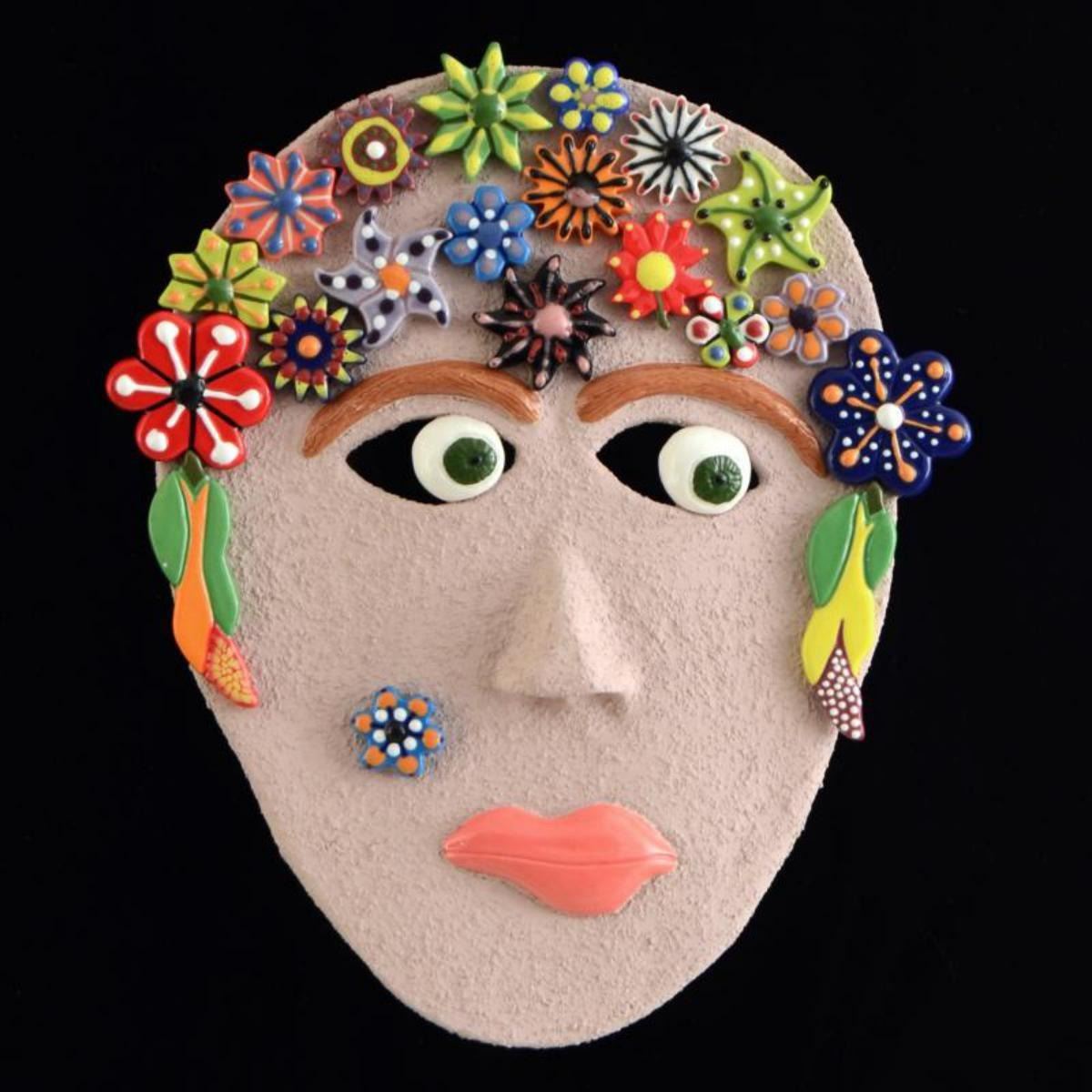 "Floral Goddess II" Original Hand-Made Ceramic Mask Sculpture by George Marlowe, with Certificate of
