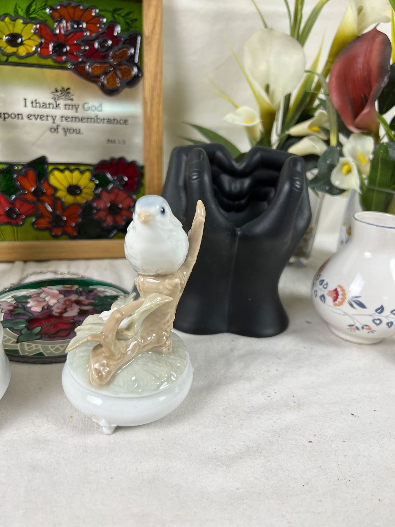Music makers do work but stick. Flowers measure 15" tall