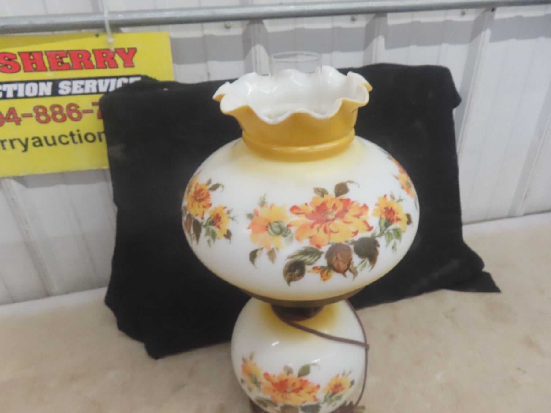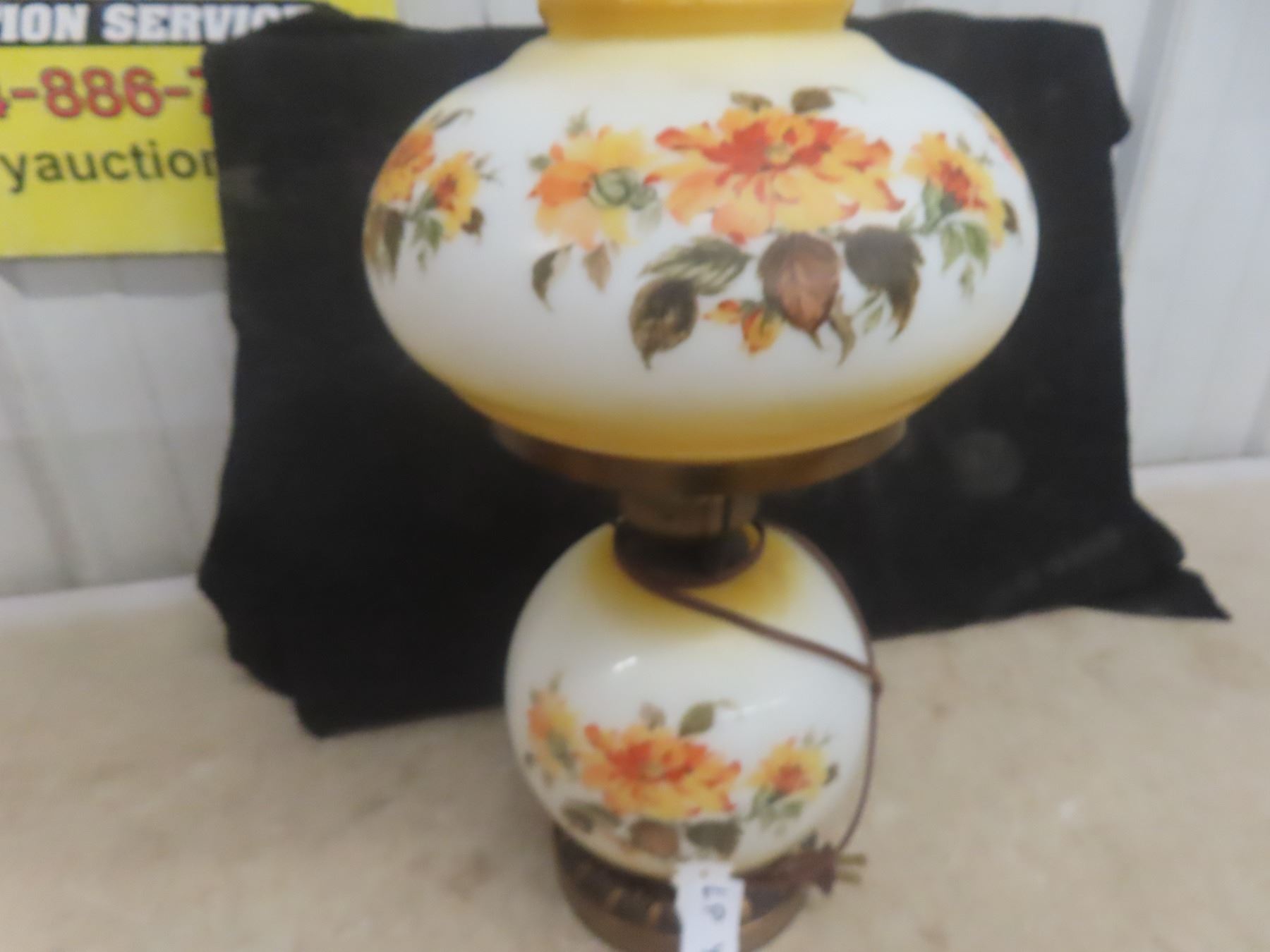 Floral Lanturn Style Lamp Some Broken Pieces of Shade -Not too Noticable