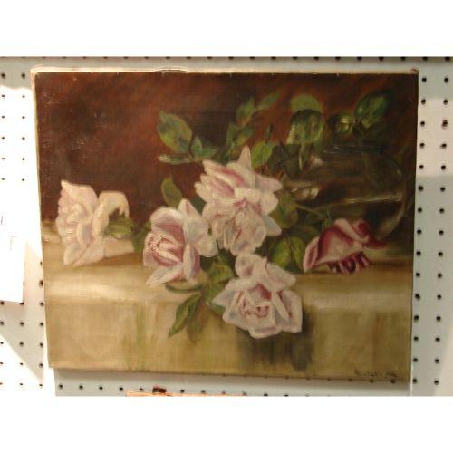 Floral Oil on Canvas Signed Alice Kadity 1900's