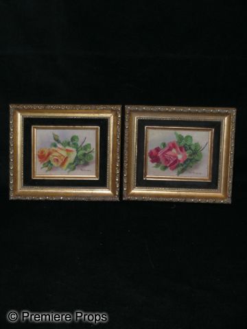 Two small floral framed paintings by Wilkinson. (approx. 8" x 7"). Note this item is not from a film.