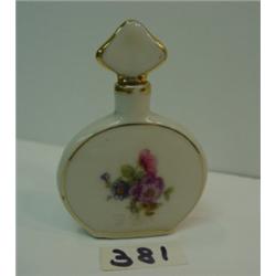 3" (just over) Porcelain perfume bottle with decaled florals and gold detailing, marked, "Germany". Exc cond