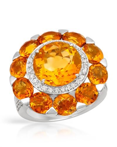 Floral Round Prong-set Citrine Diamond Ring in 14K White Gold | 320079 6.5 Grams, featuring 4.27 White Diamond Round ct 1 0.47 Citrine ct 52 4.4 ct 10 14 ct